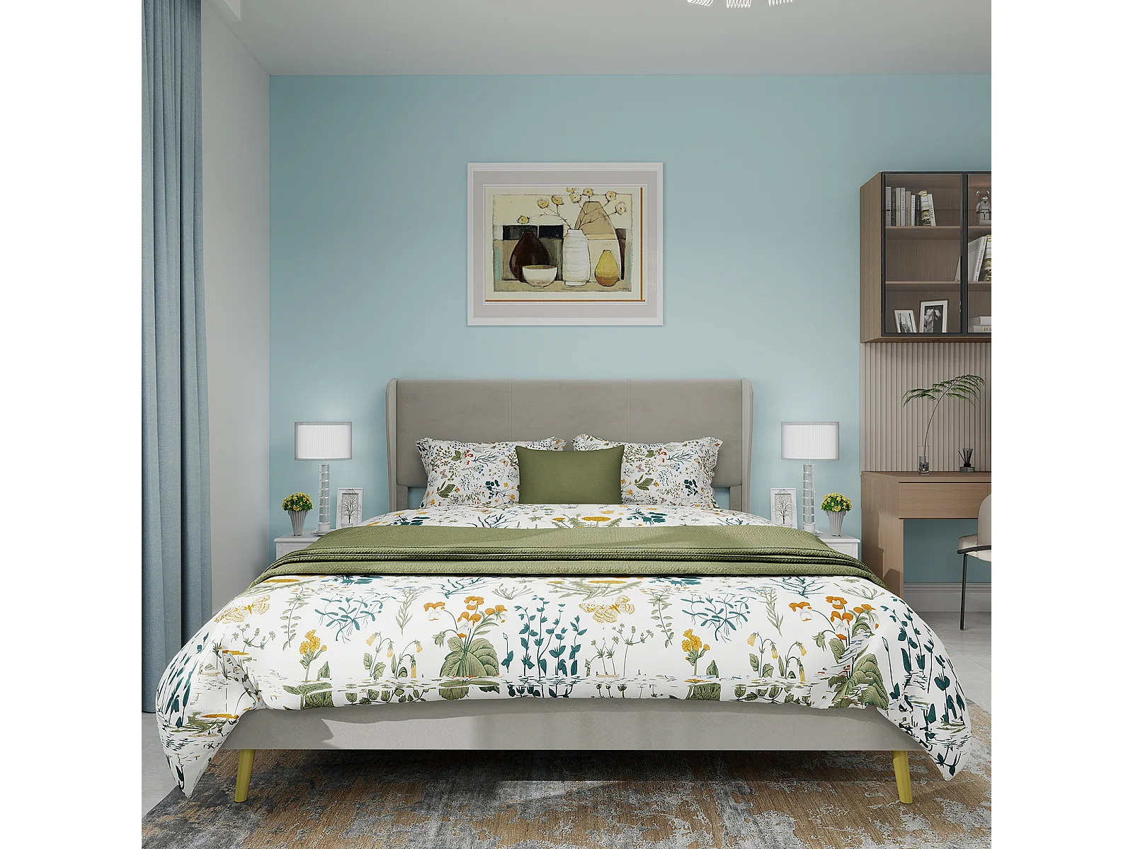 Lit double rembourré en velours - 140x200cm - tête de lit en forme de fleur - avec sommier à lattes - Beige