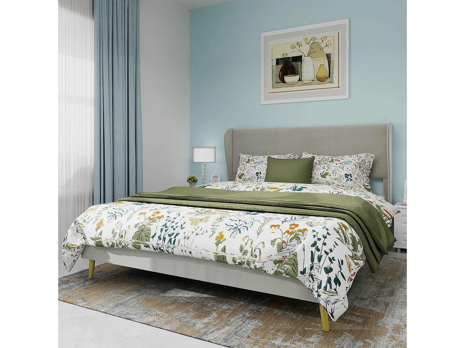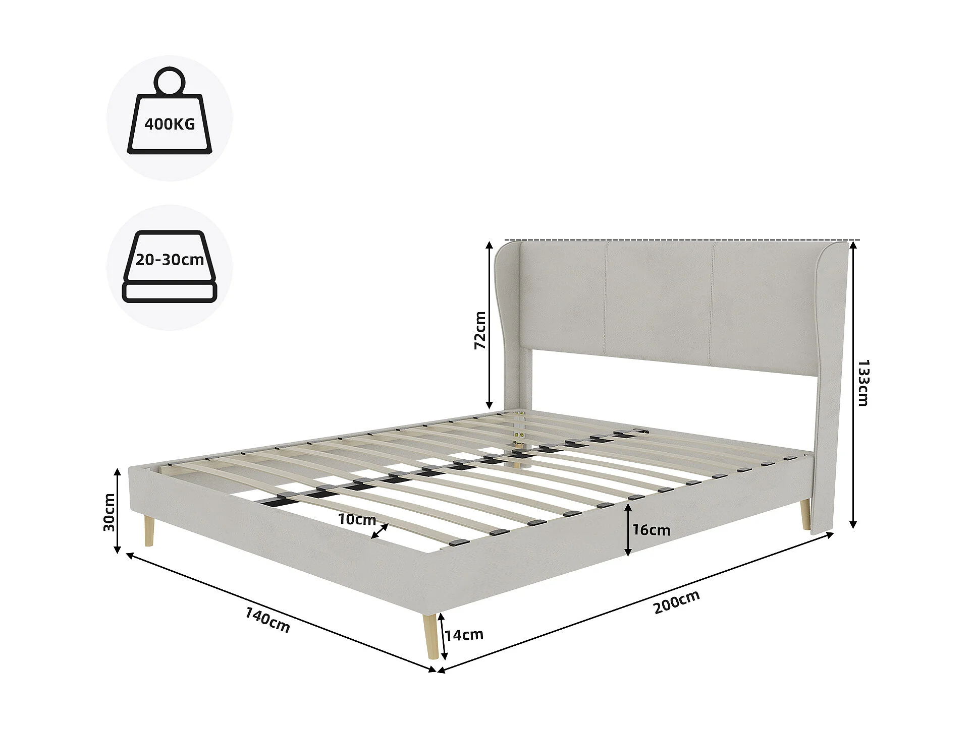 Lit adulte 140 x 200 cm - Lit double avec pieds en bois et dossier moelleux - velours beige - matelas non inclus