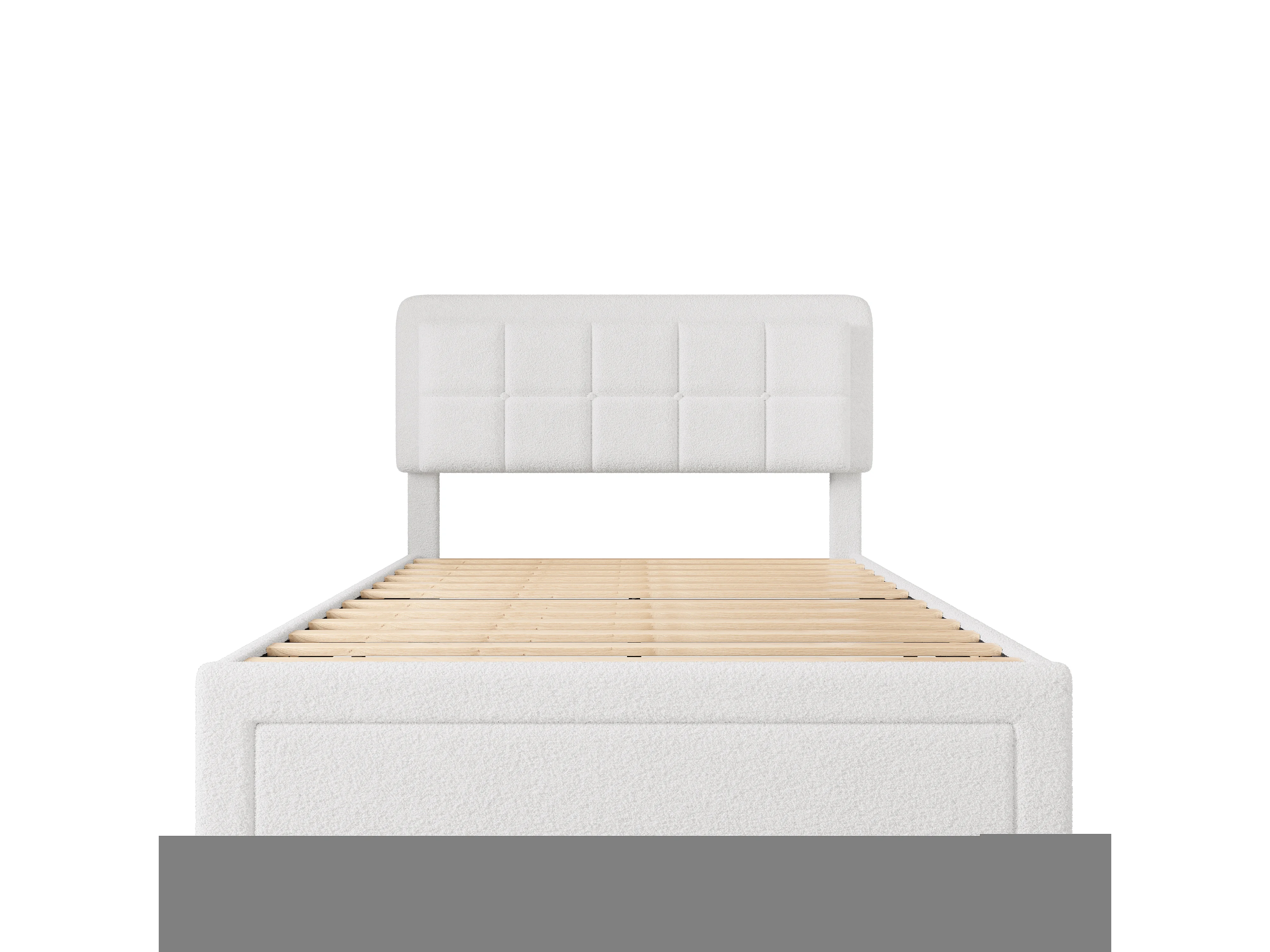 Lit adulte 140x200 cm avec LED et USB, 1 tiroir de rangement - peluche blanche (sans matelas)