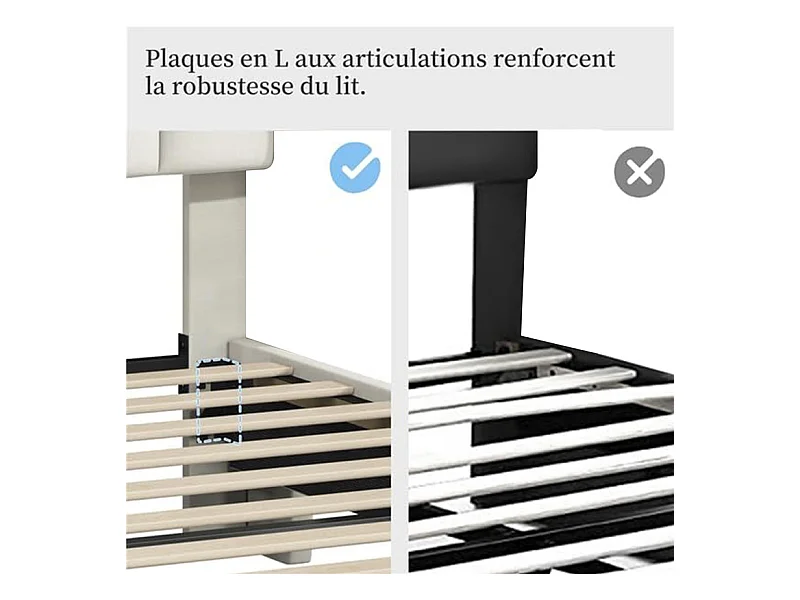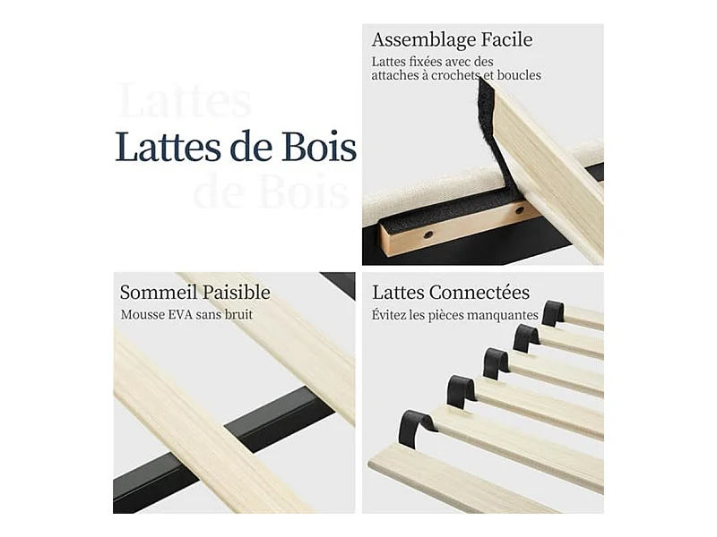 Lit adulte 140x200 cm inre - lit capitonné avec tête de lit en tissu - sommier à lattes - lit double pour 2 personnes - beige