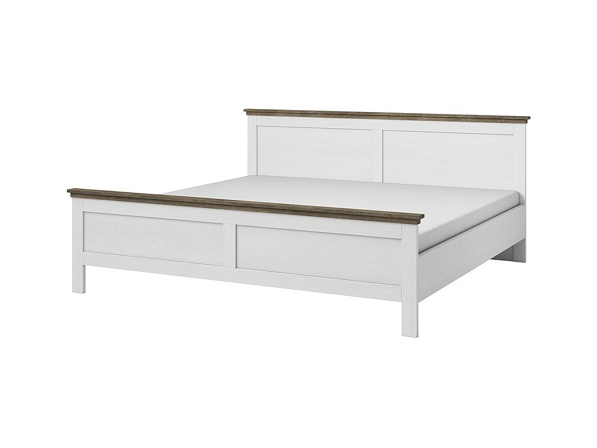 Lit adulte 140x200 collection ASSIA. Coloris blanc et finitions aspect chêne.