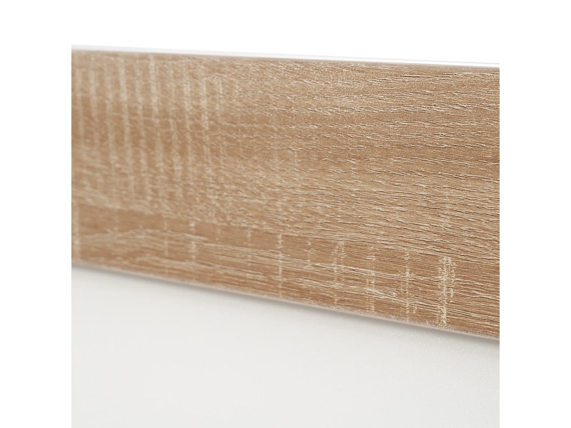 Lit double 160x200 avec sommier intégré, effet flottant, tête de lit, bois, blanc et chêne (Sans matelas)