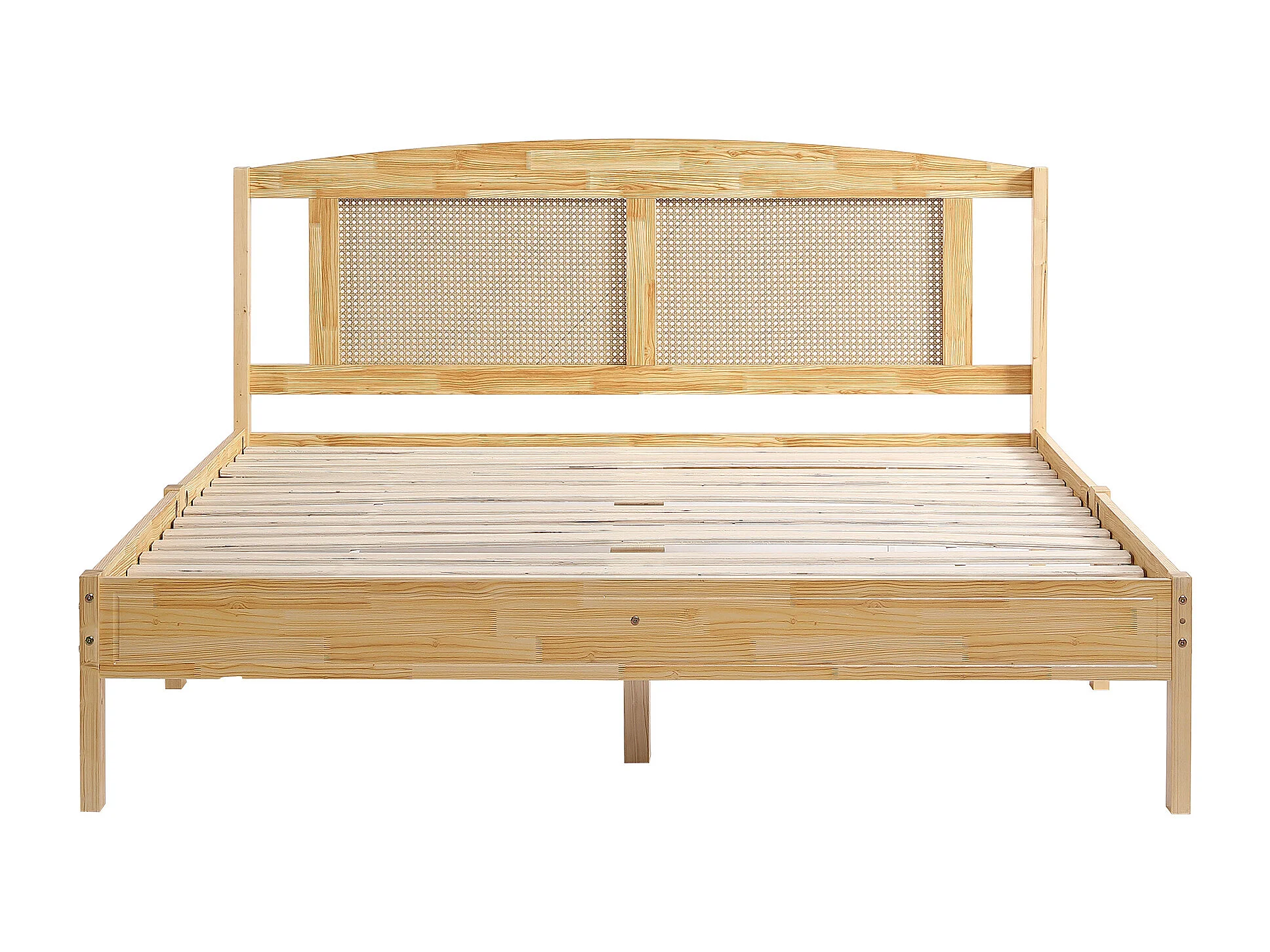 Lit adulte 160x200 cm - avec sommier à lattes - en pin - naturel - sans matelas