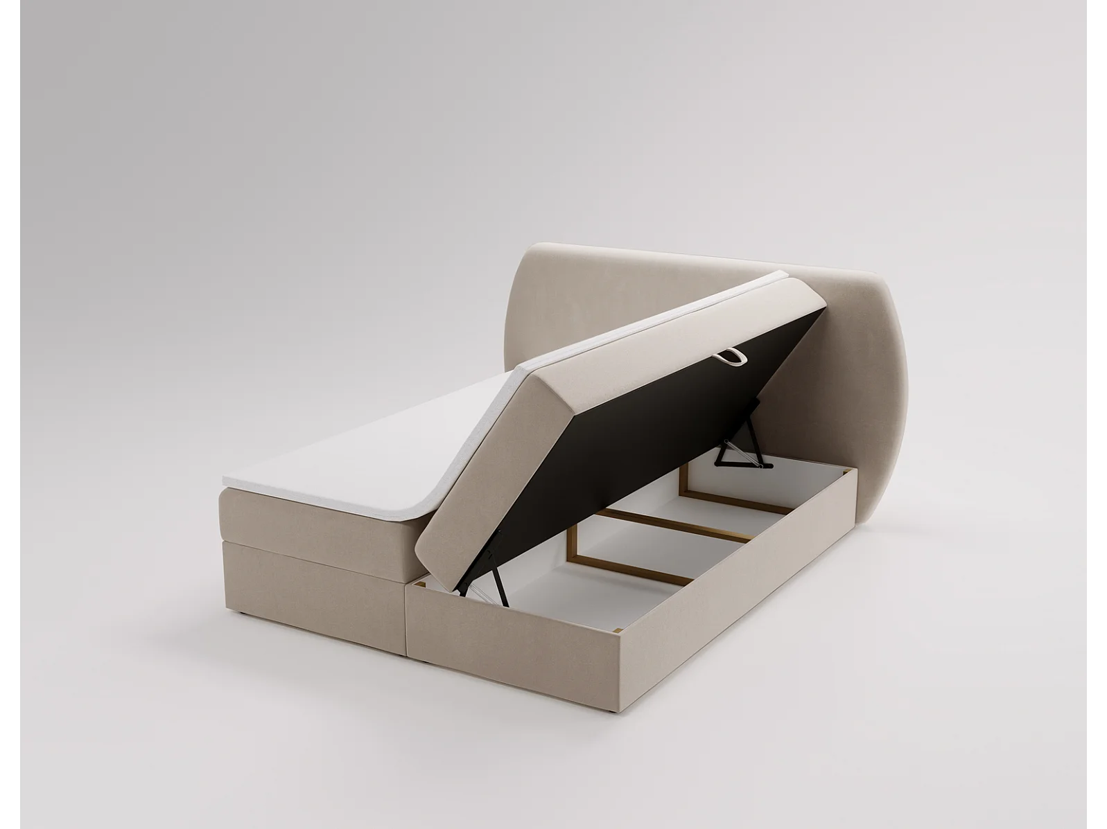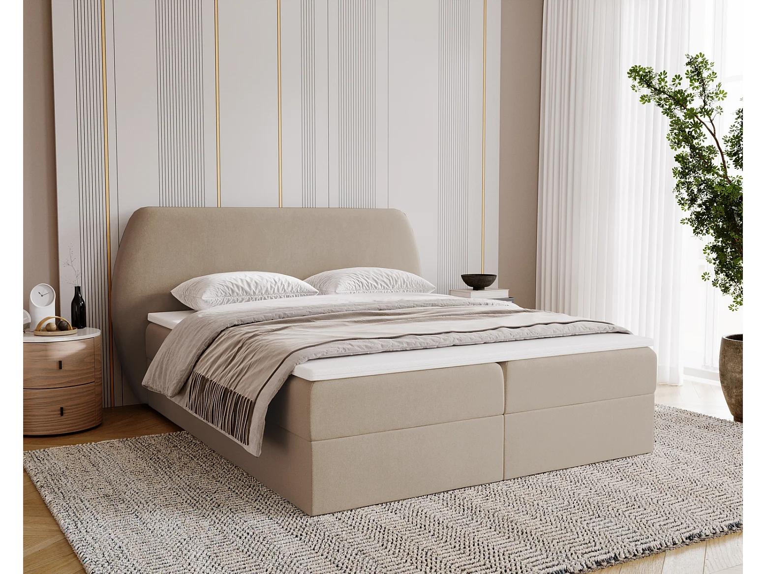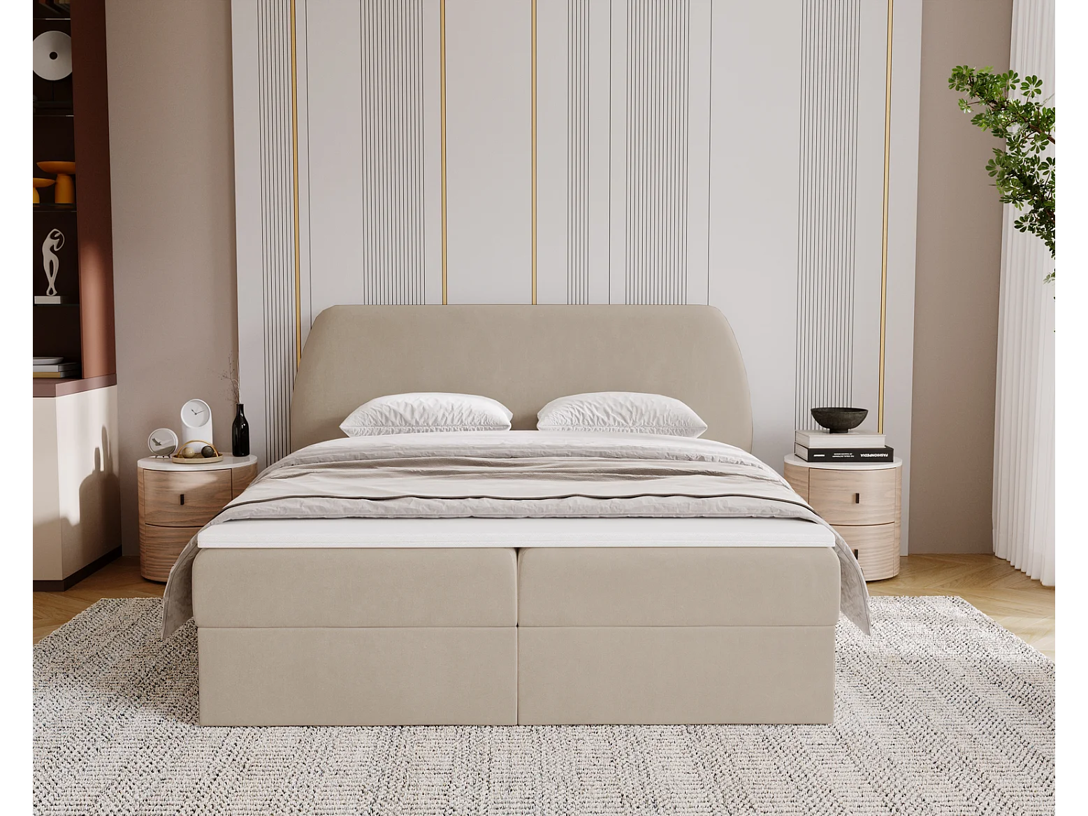 Lit adulte 180x200 cm Cartagena - Lit capitonné avec Rangement, Matelas H3 - Lit double Beige (Komodo 11)