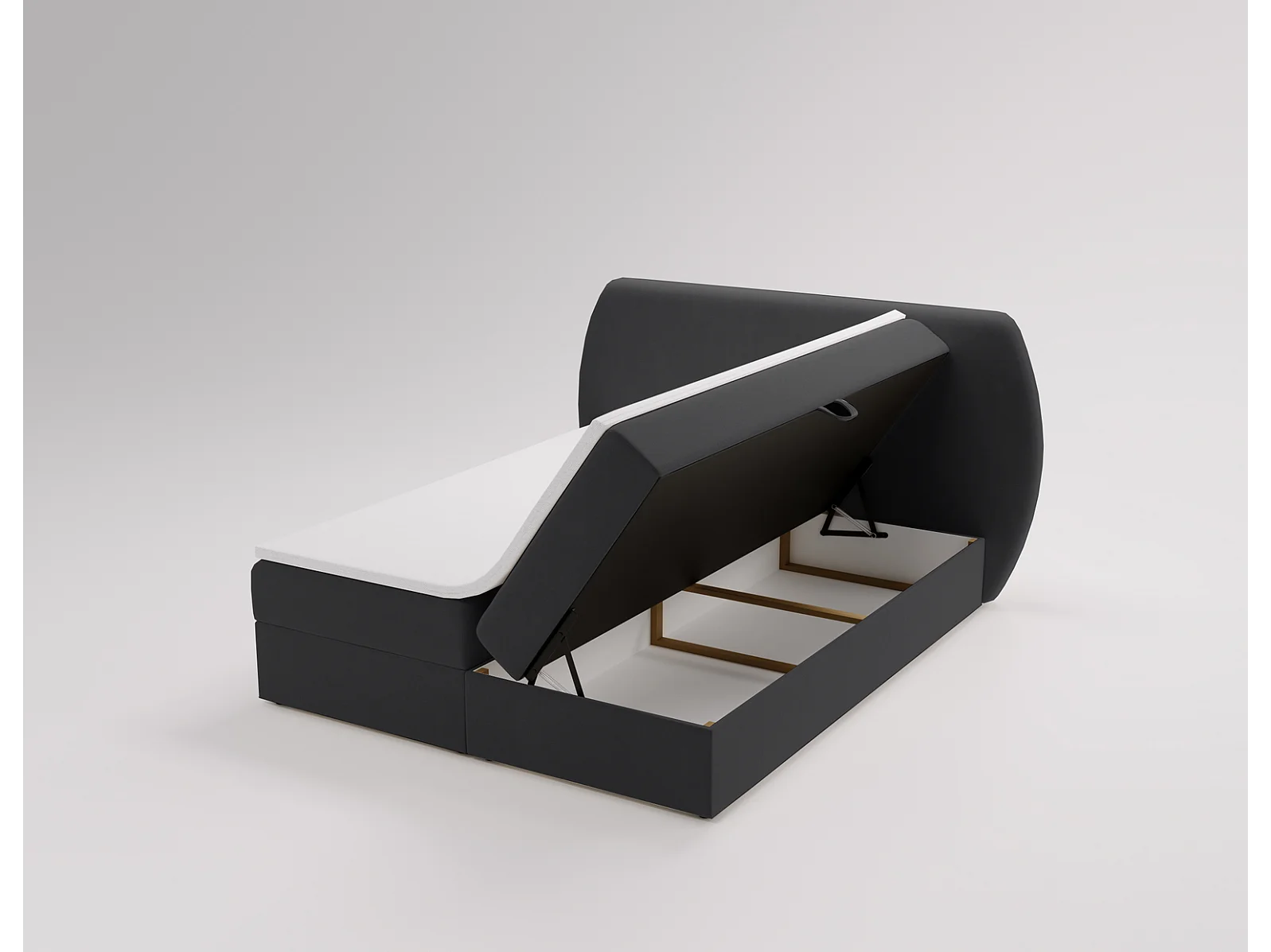 Lit adulte 180x200 cm Cartagena - Lit capitonné avec Rangement, Matelas H3 - Lit double Noir (Komodo 23)