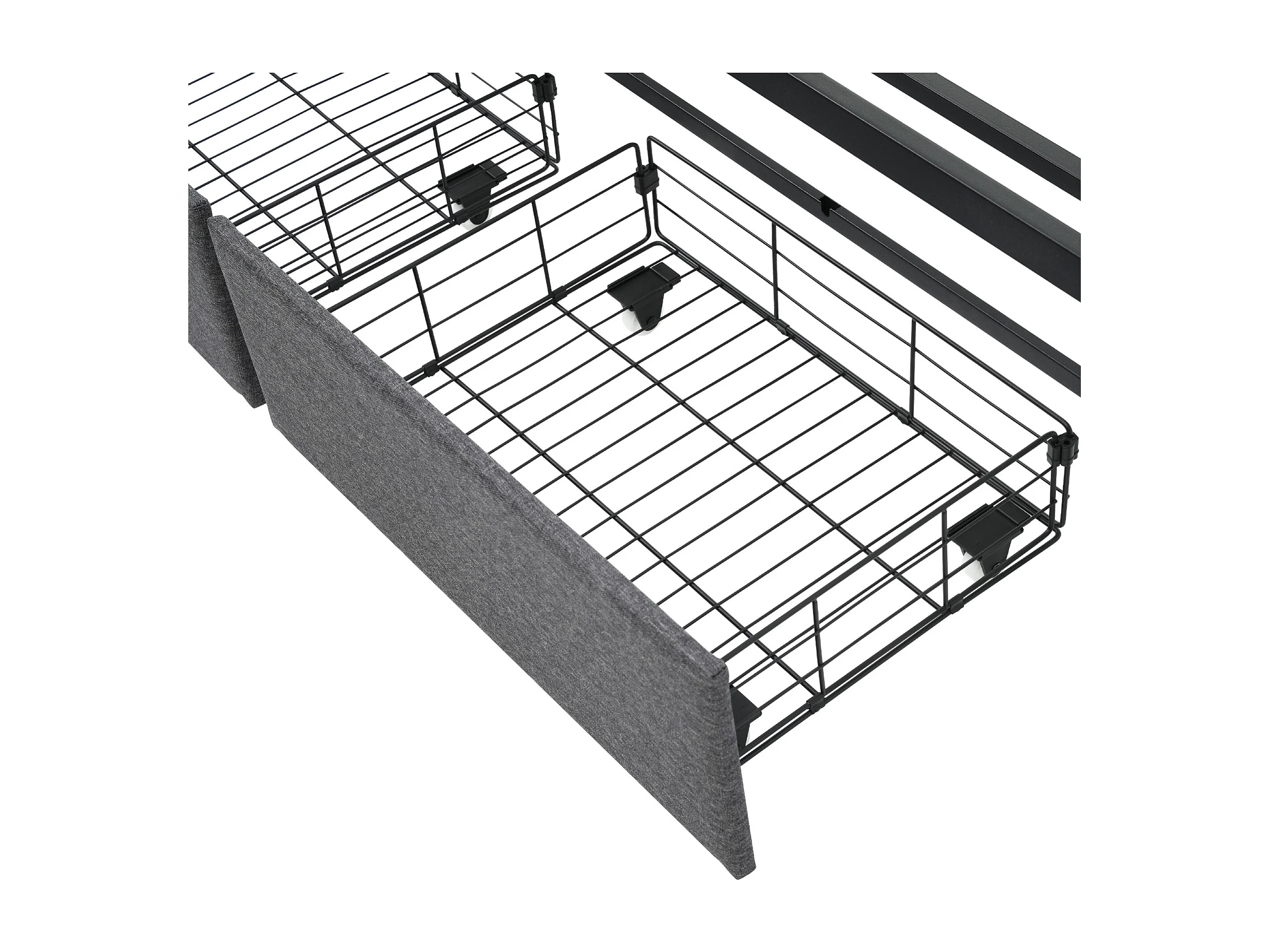 Lit 140x200 avec tête de lit rangement, avec ports USB et USB C, avec LED, lin, gris (Sans matelas)
