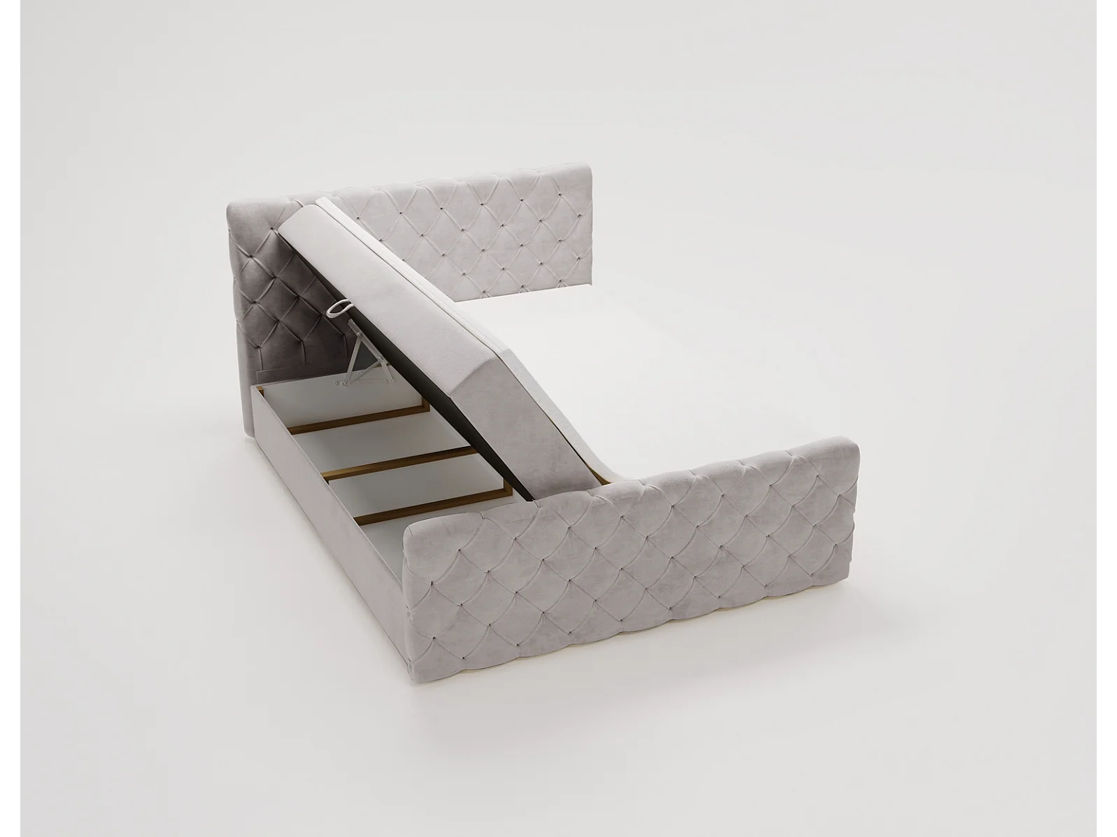 Lit adulte avec Rangement 140x200 Portofino - Lit boxspring, chesterfield, Tissu Velours Gris clair (Elegance 13)