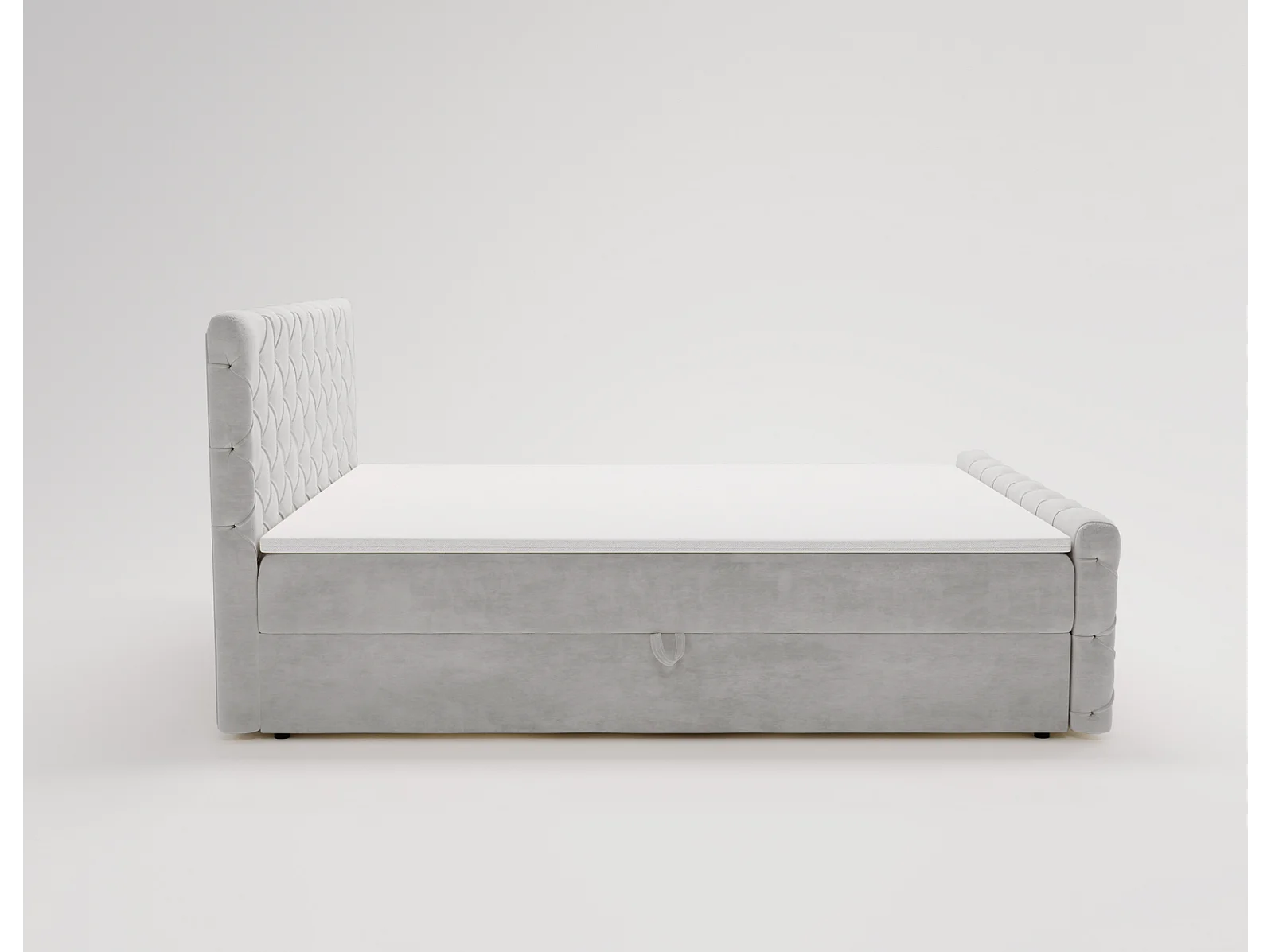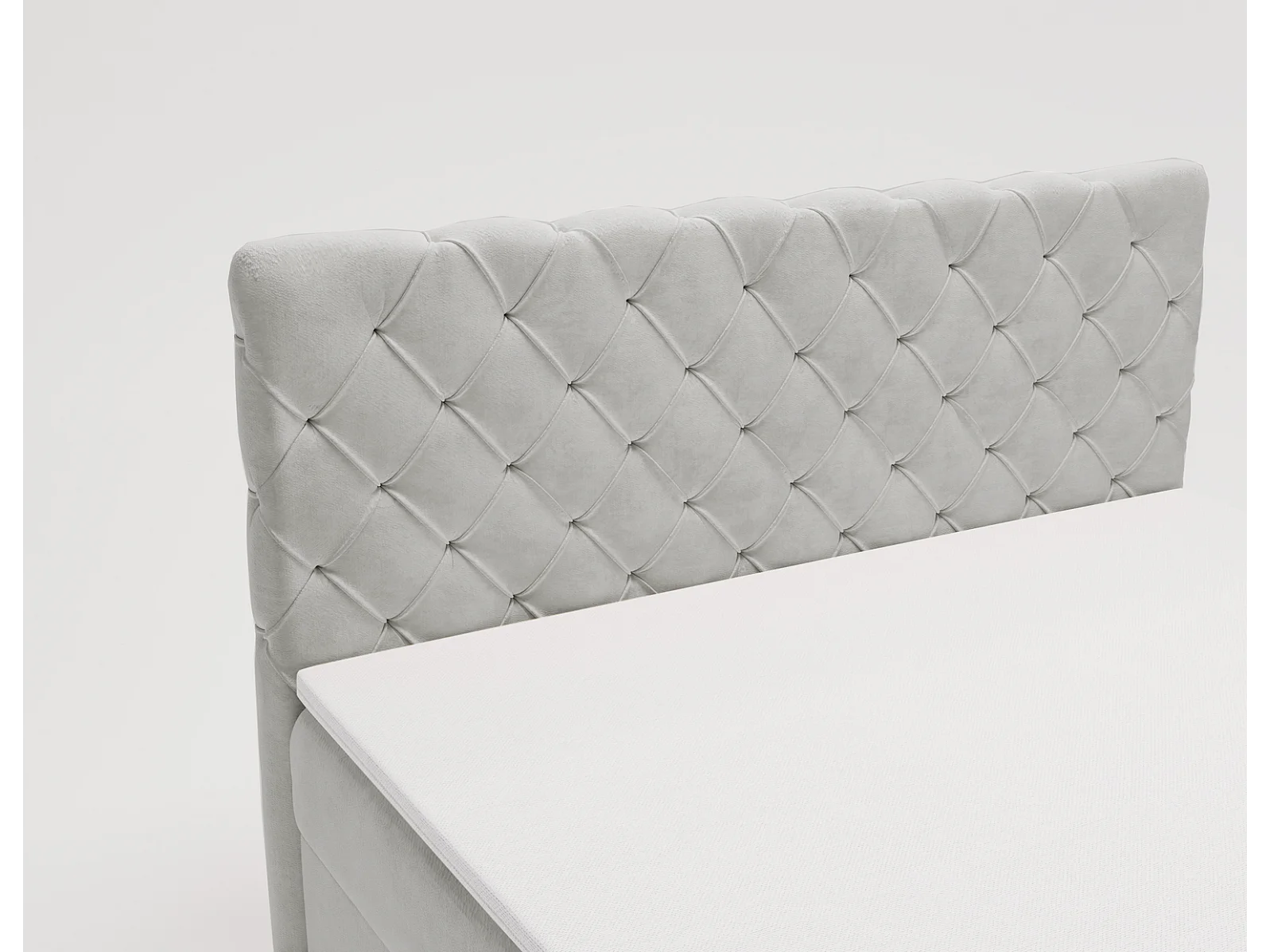Lit adulte avec Rangement 180x200 Portofino - Lit boxspring, chesterfield, Tissu Velours Gris clair (Elegance 13)