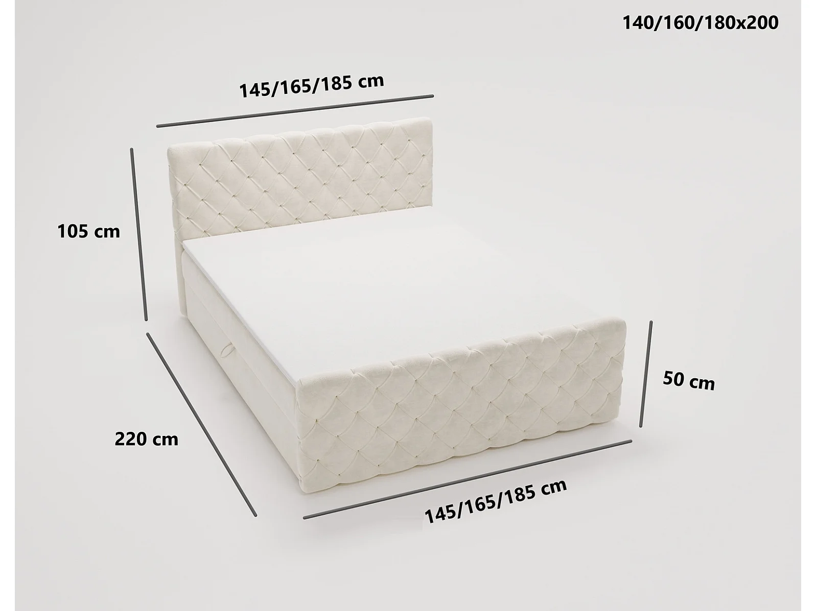 Lit adulte avec Rangement 180x200 Portofino - Lit boxspring, chesterfield, Tissu Velours Gris (Elegance 19)