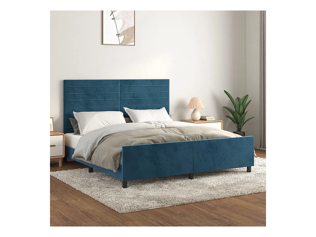 Lit adulte avec tête de lit Bleu foncé 180x200 cm Velours FR428607