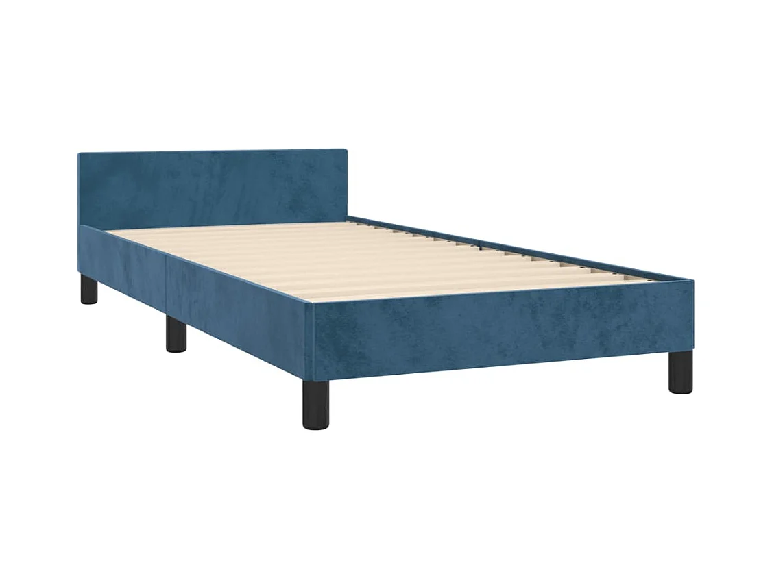 Lit simple + tête de lit bleu 90x190 cm velours FR80610