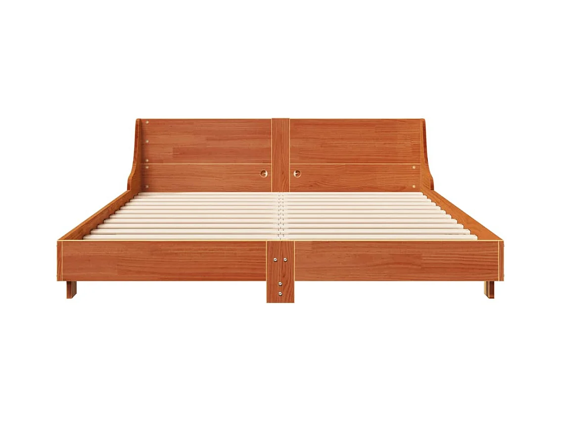 Lit adulte avec tête de lit cire marron 120x190cm bois de pin FR112522