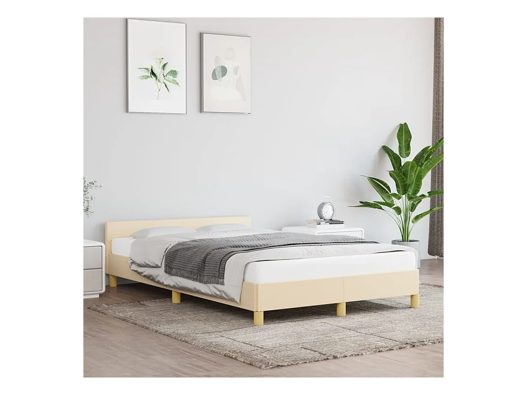 Cadre de lit sans matelas crème 120x190 cm tissu