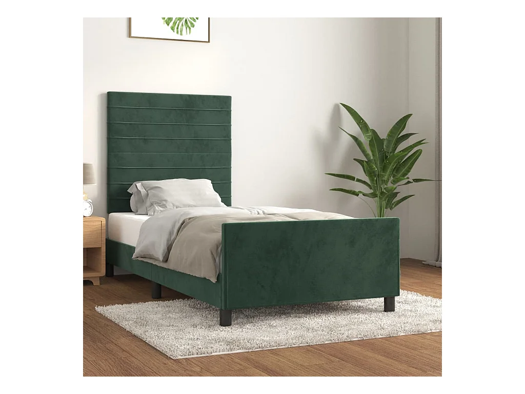 Lit simple + tête de lit Vert foncé 90x190 cm Velours FR51444