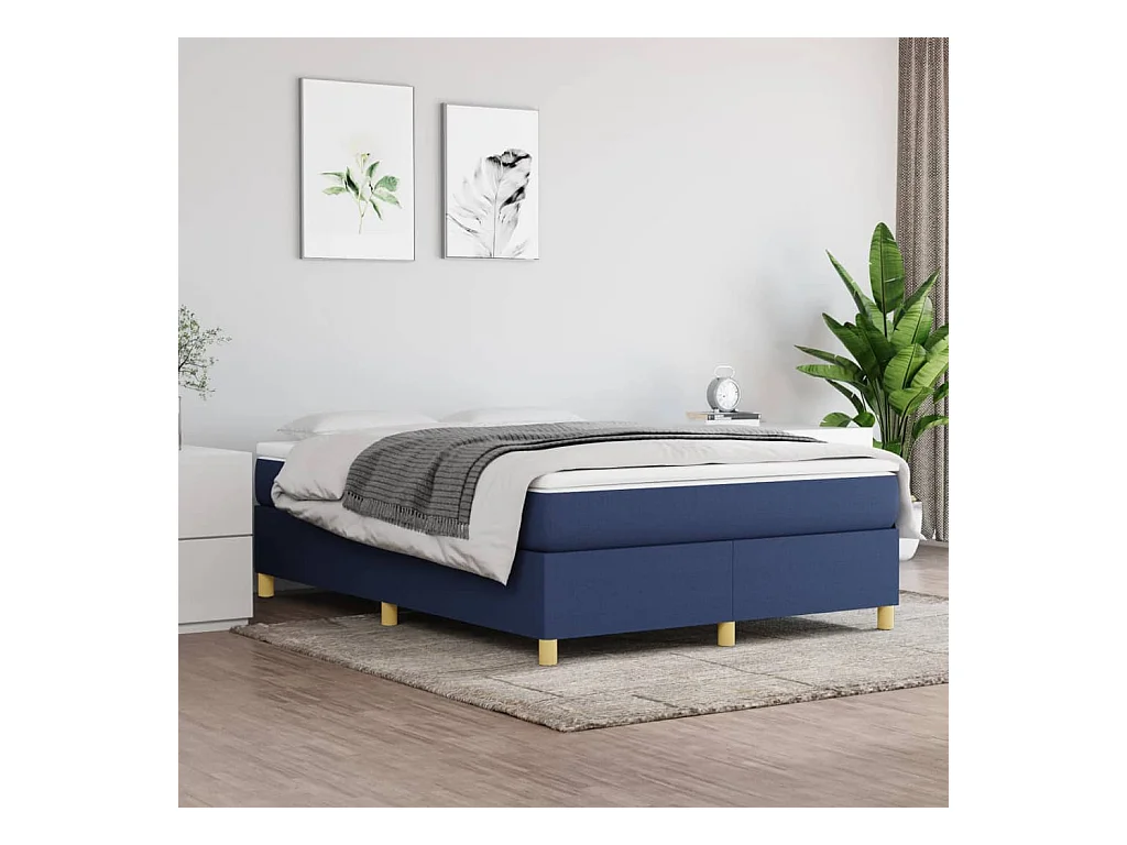 Cadre de lit sans matelas bleu 140x200 cm tissu