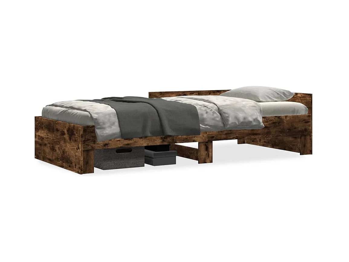 Lit adulte chêne fumé 75x190 cm bois d'ingénierie FR25236