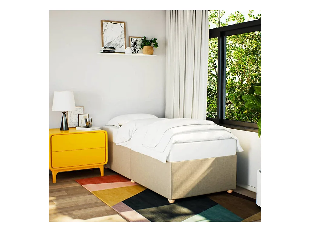 Cadre de lit sans matelas crème 100x200 cm tissu