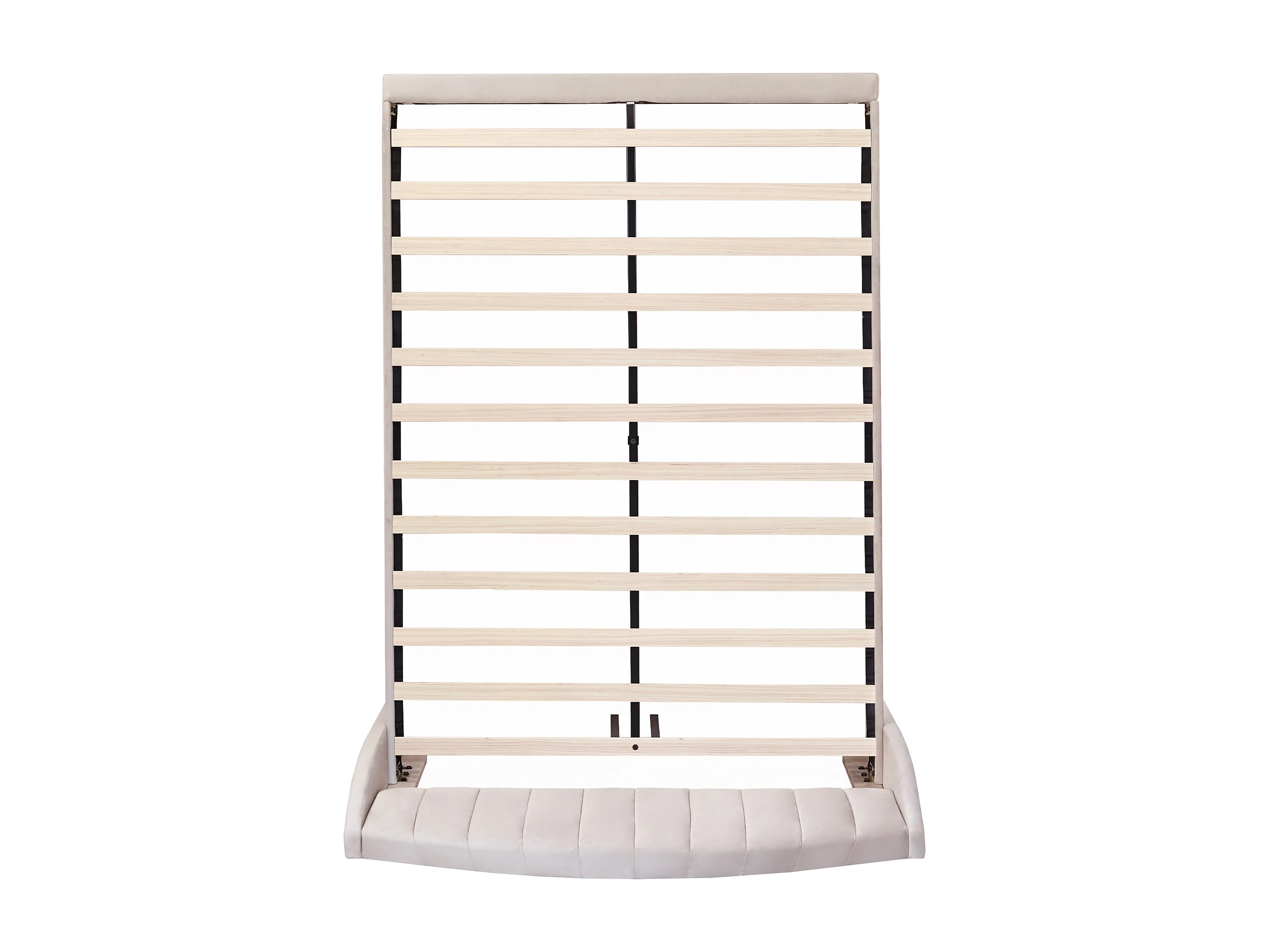 Lit double 140x200 cm avec sommier à lattes tête de lit rembourrée, en velours, beige (Sans matelas)