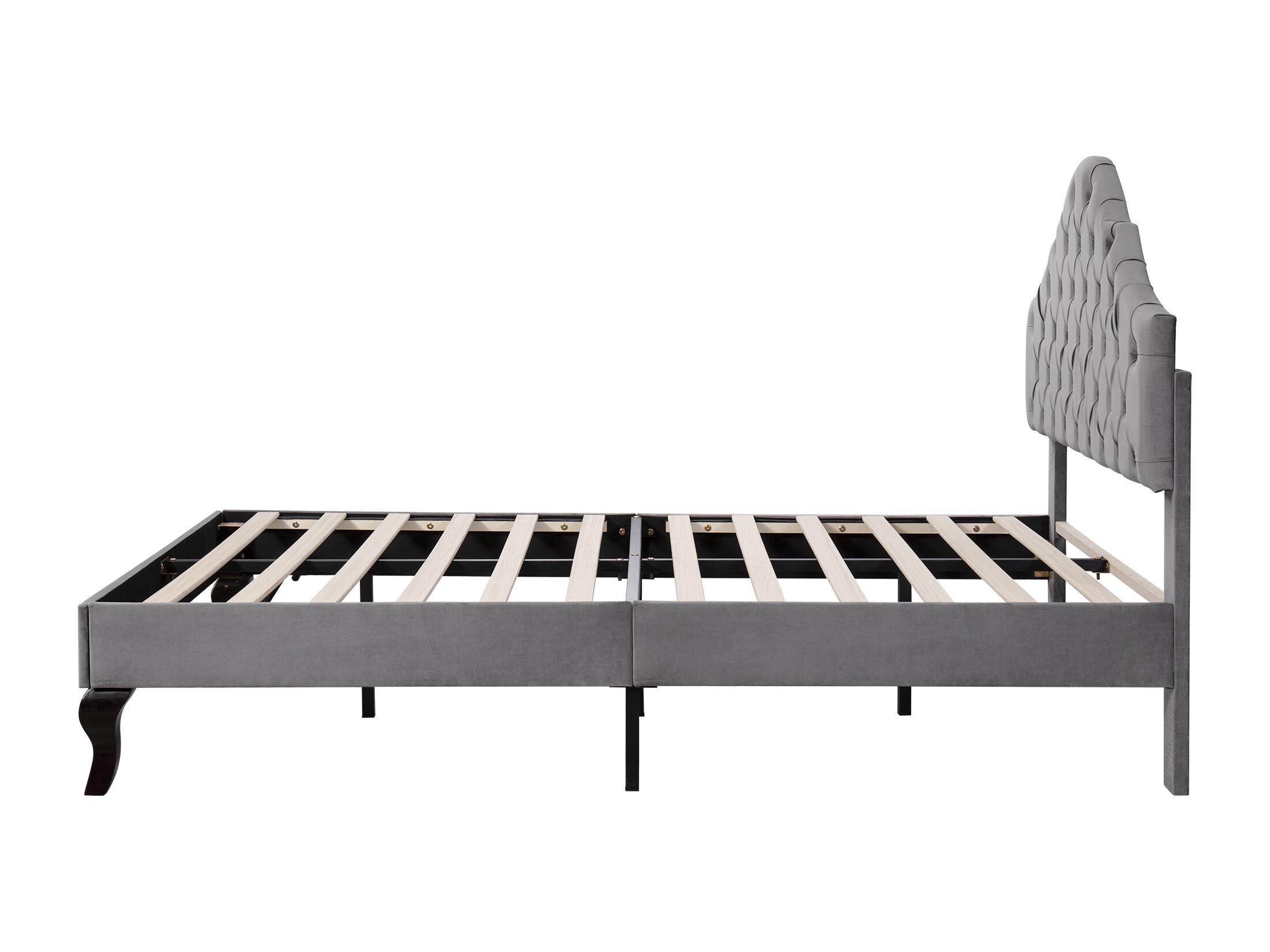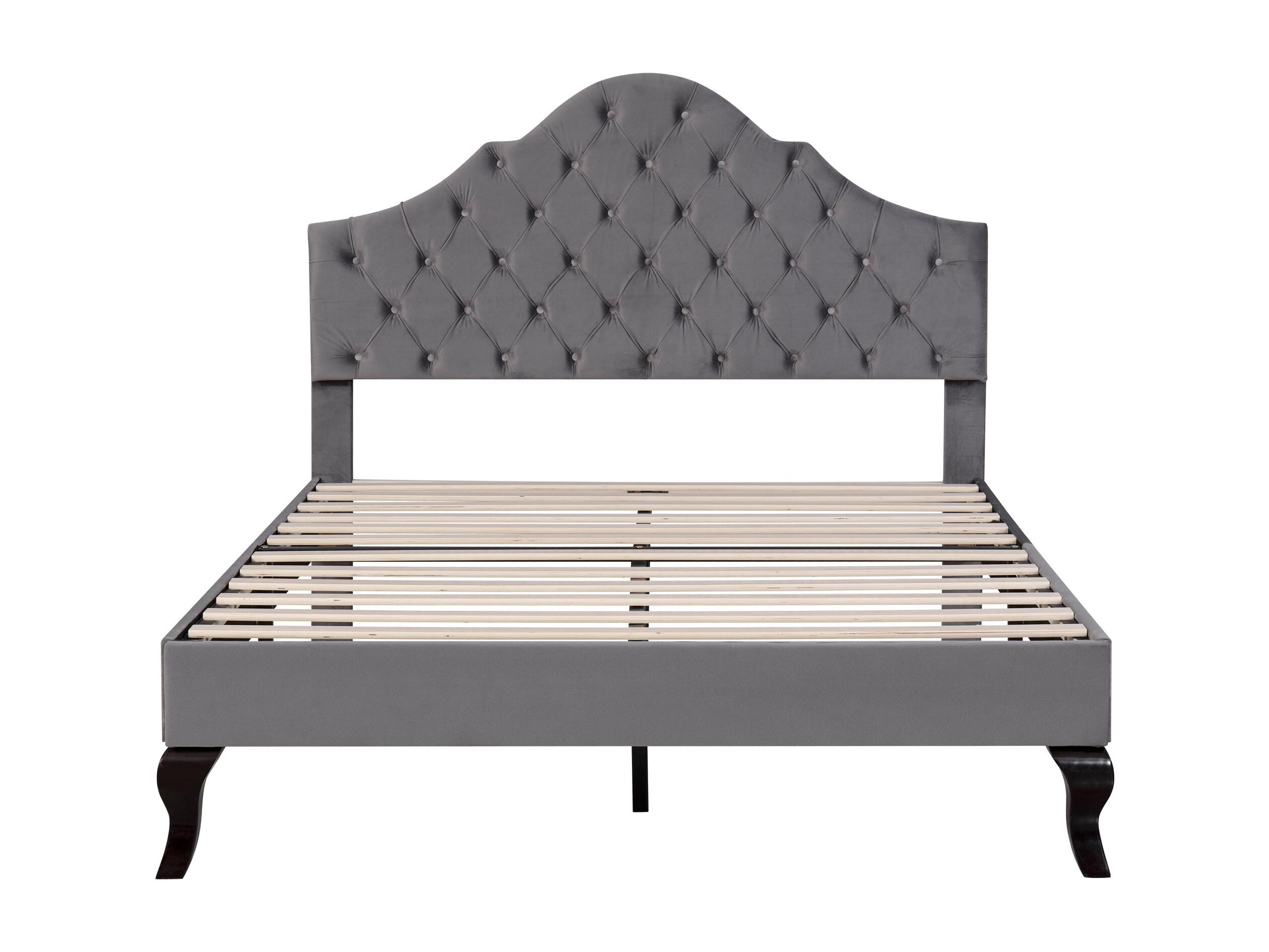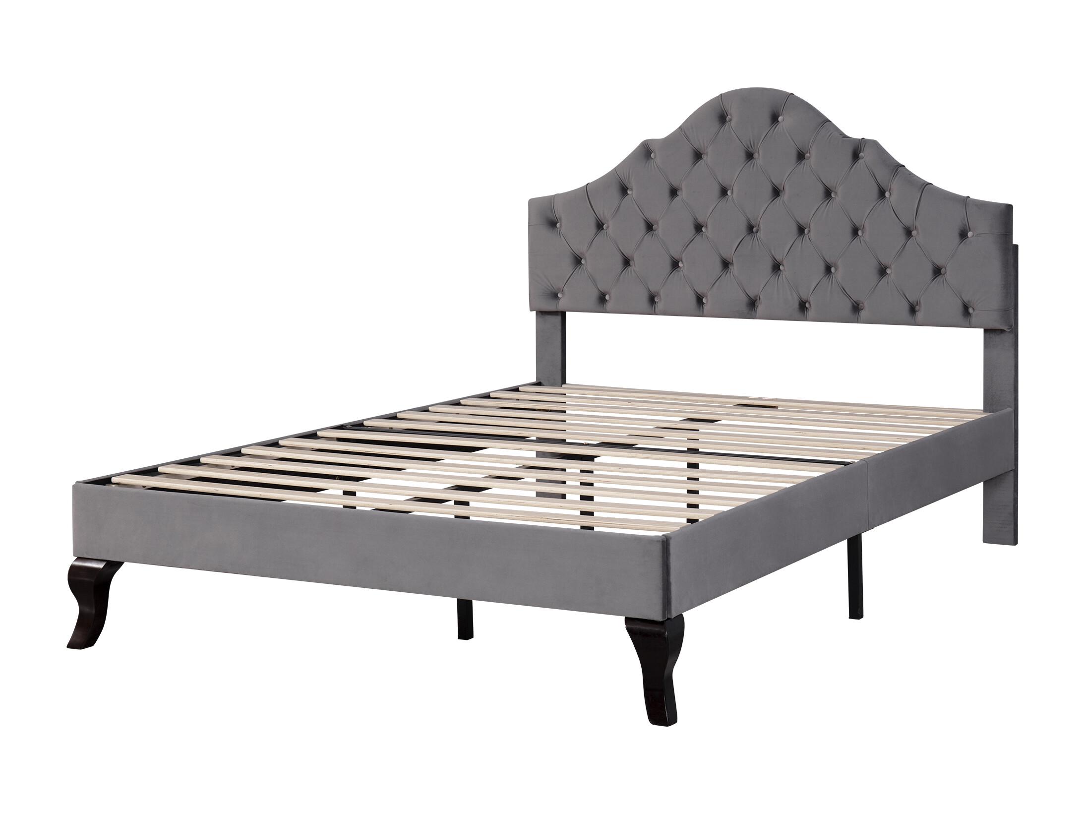 Lit adulte double 140x200 cm avec sommier - tête de lit rembourré - bois - velours gris (sans matelas)