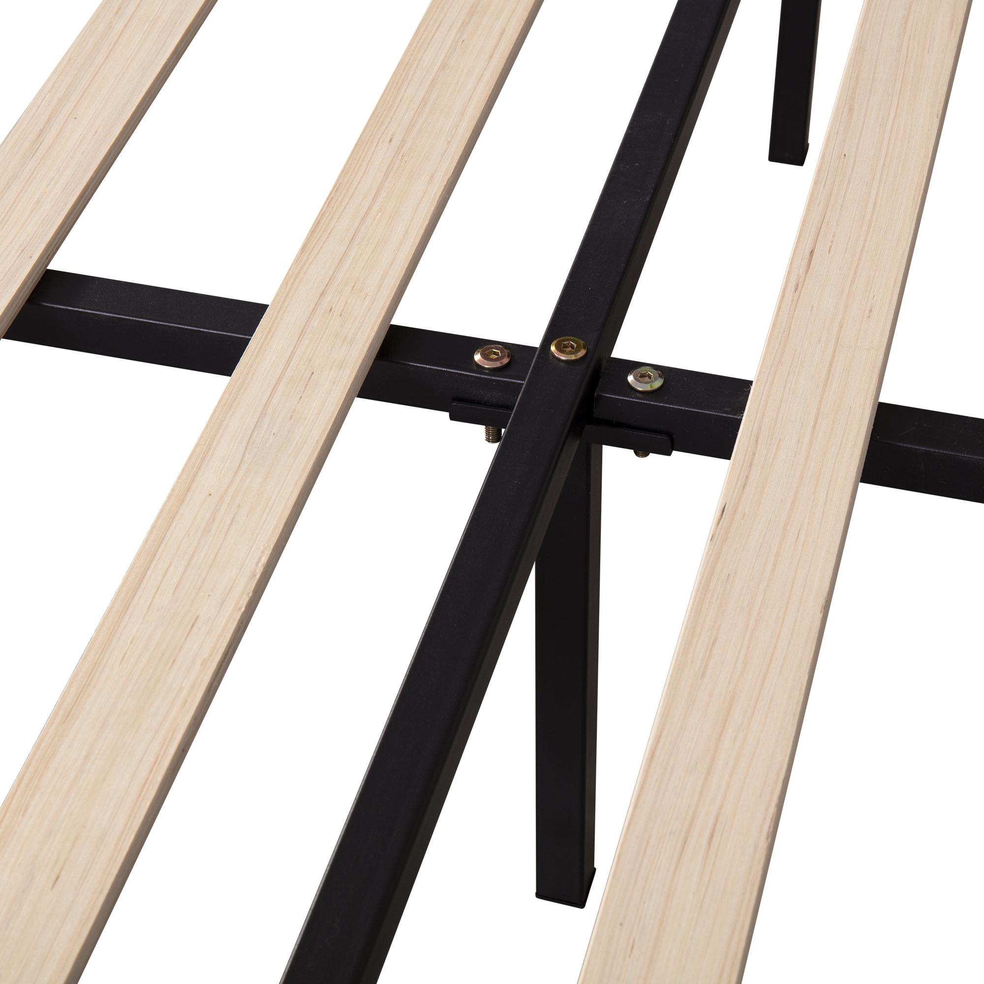 Lit double adulte 140x200 cm avec sommier - tête de lit réglable en hauteur et 4 tiroirs - cadre métallique - lin gris (sans matelas)