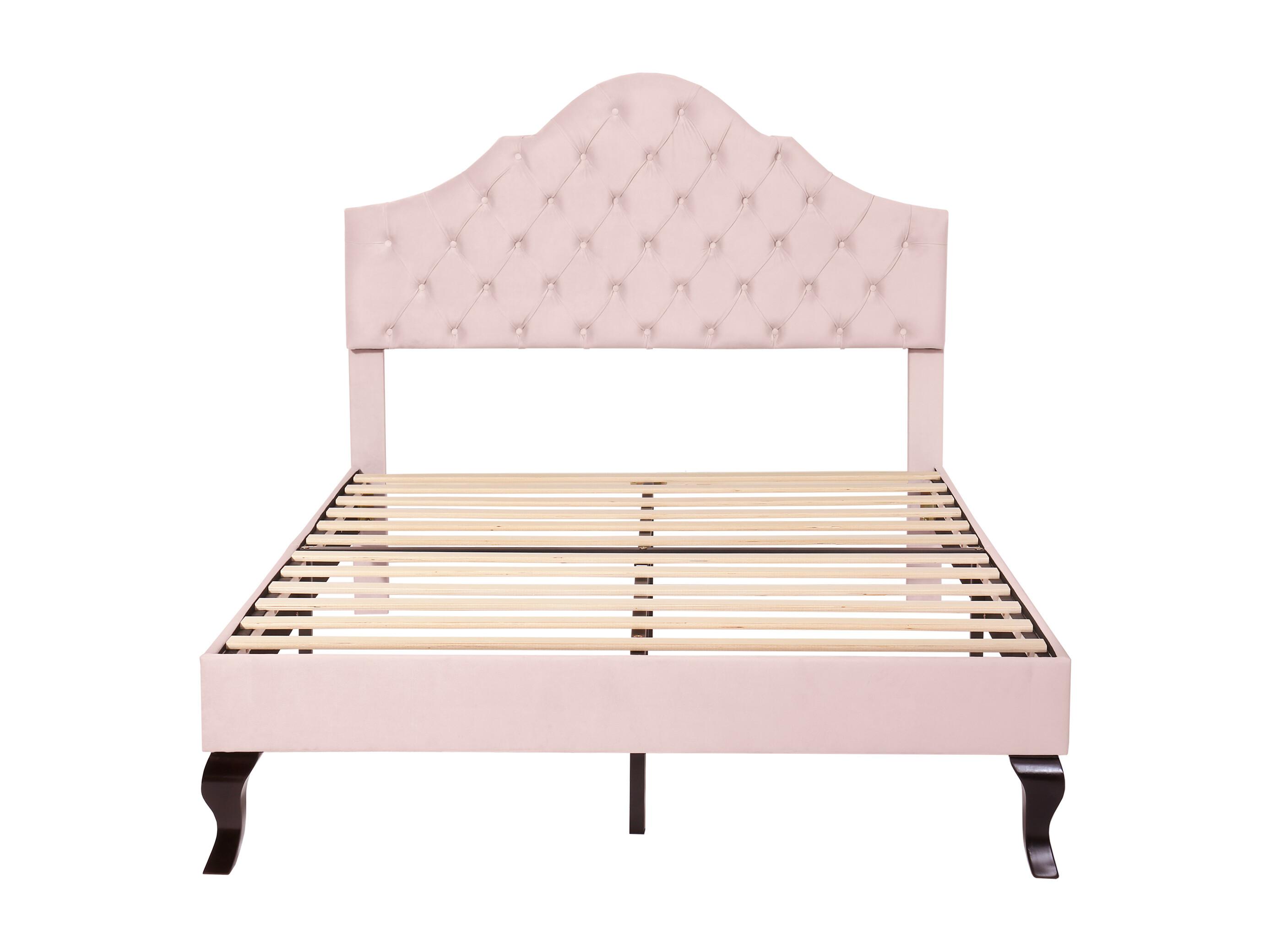 Lit adulte double 140x200 avec sommier - tête de lit réglable en hauteur - cadre de lit en bois - velours rose (sans matelas)