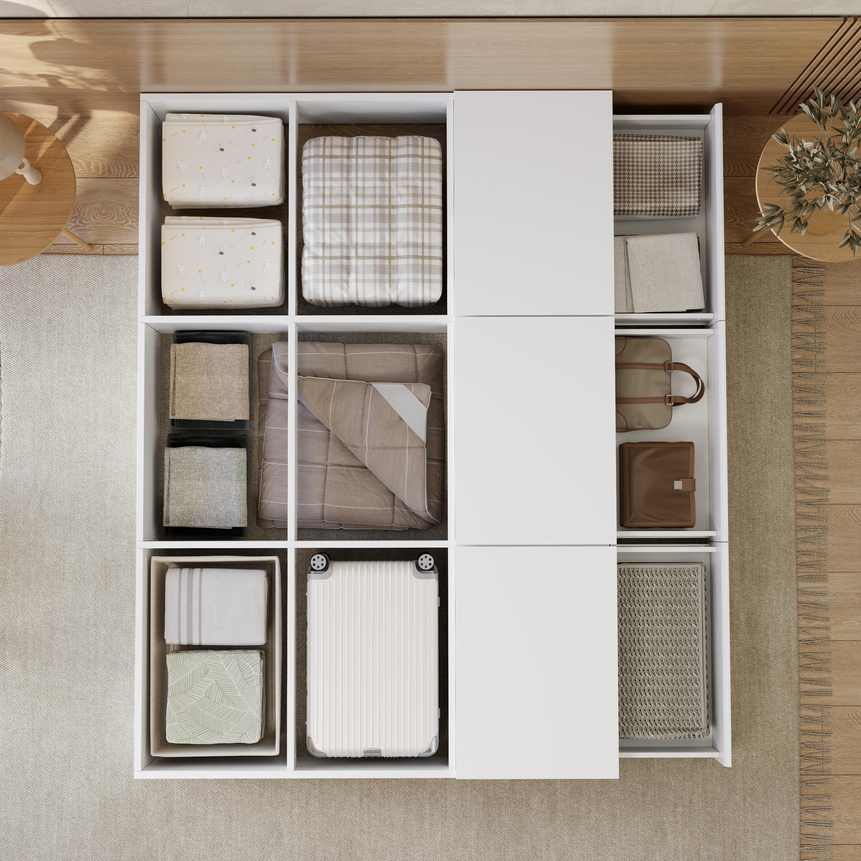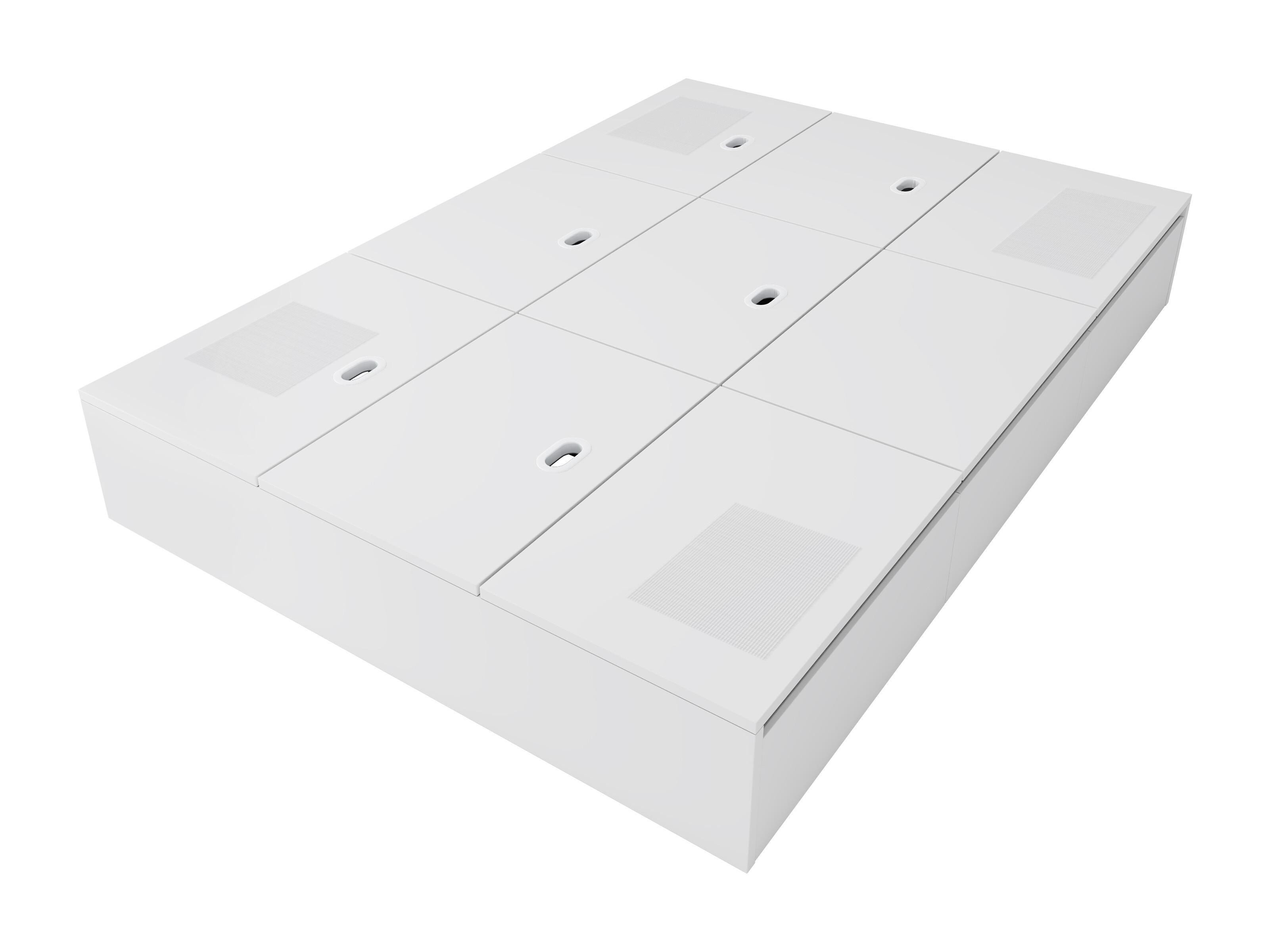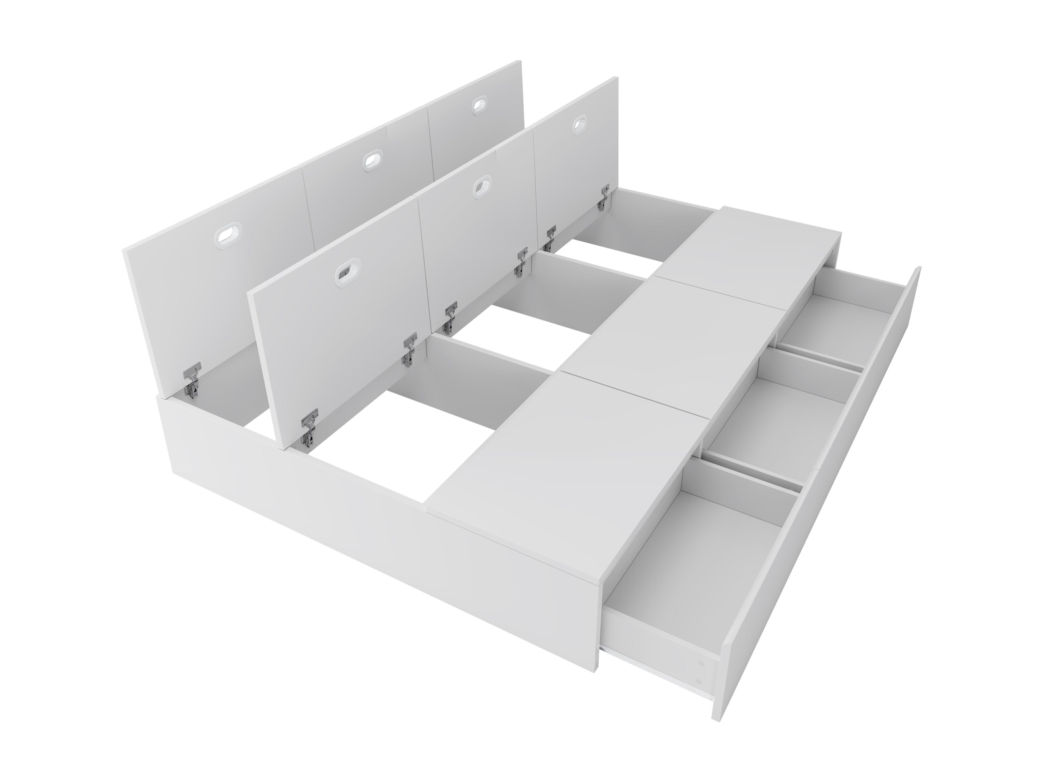 Lit coffre mobile 140x200 cm, lit avec tiroirs et étagère, design convertible avec prise USB, blanc