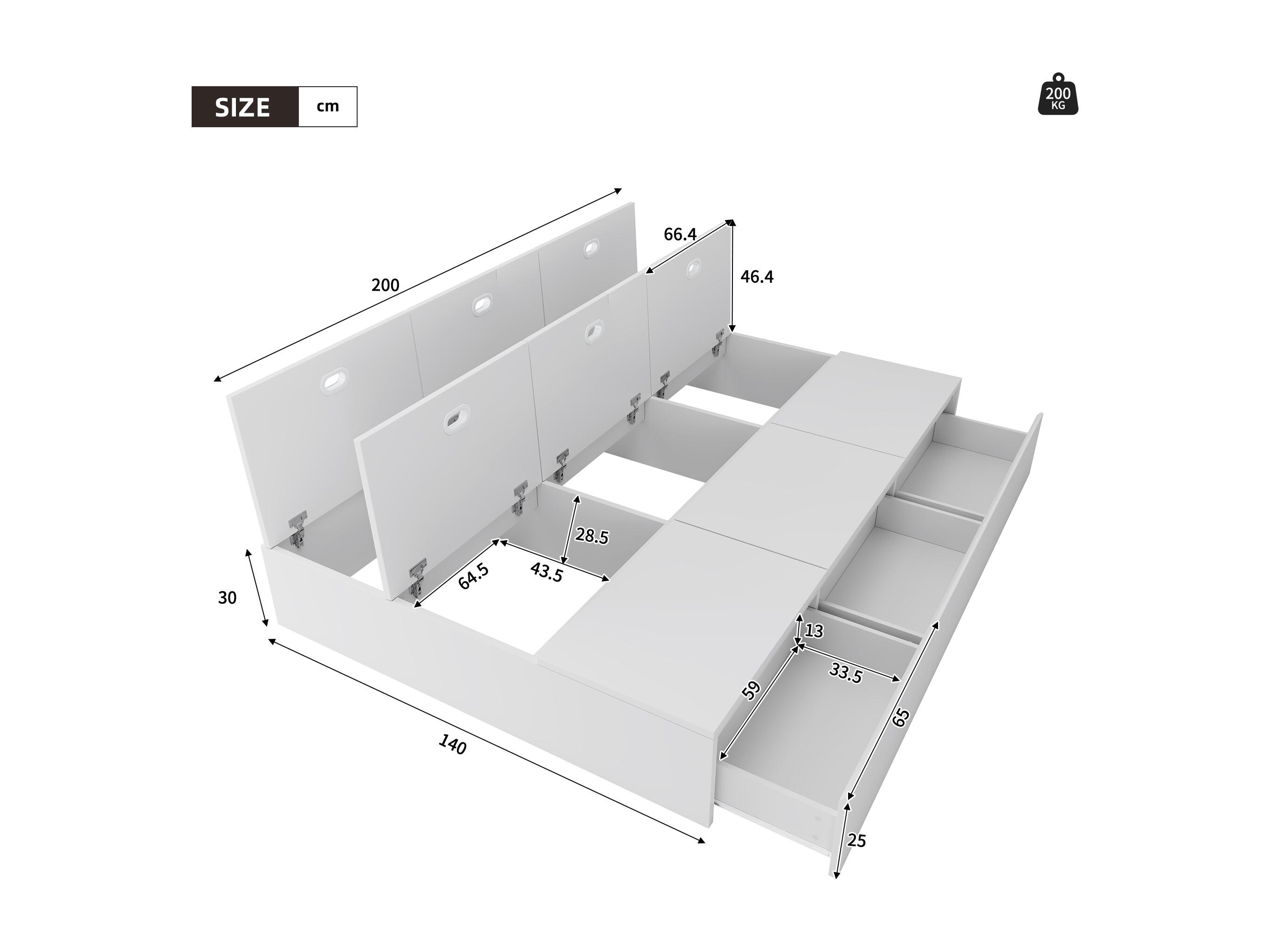 Cadre de lit avec tiroirs sans matelas blanc 140x200 cm