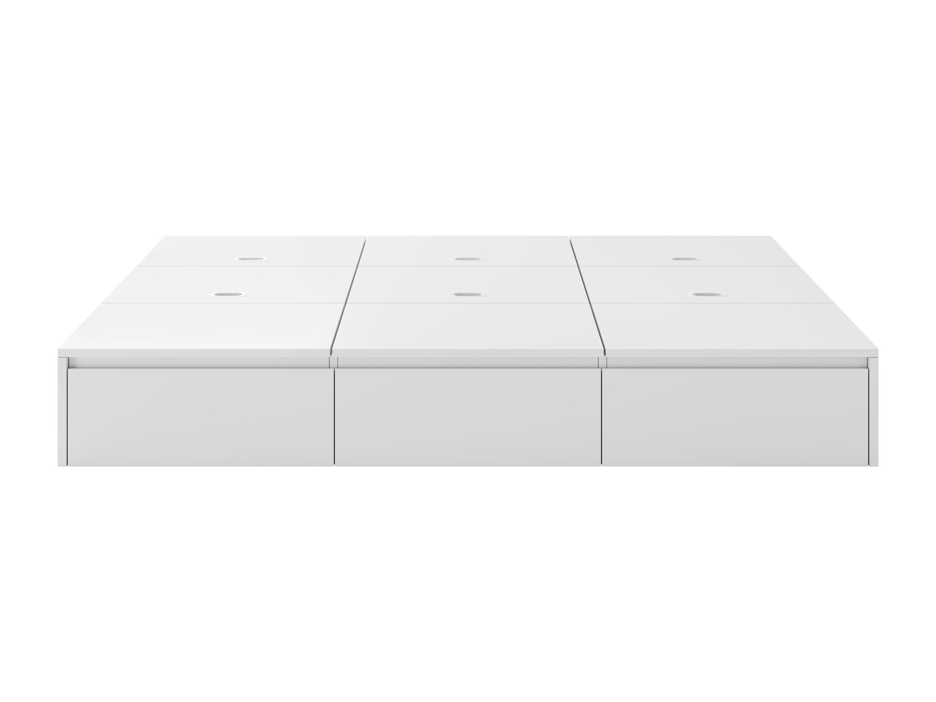 Lit adulte double 140x200 cm - 3 tiroirs et coffre de rangement - en bois - blanc (sans tête de lit ni matelas)