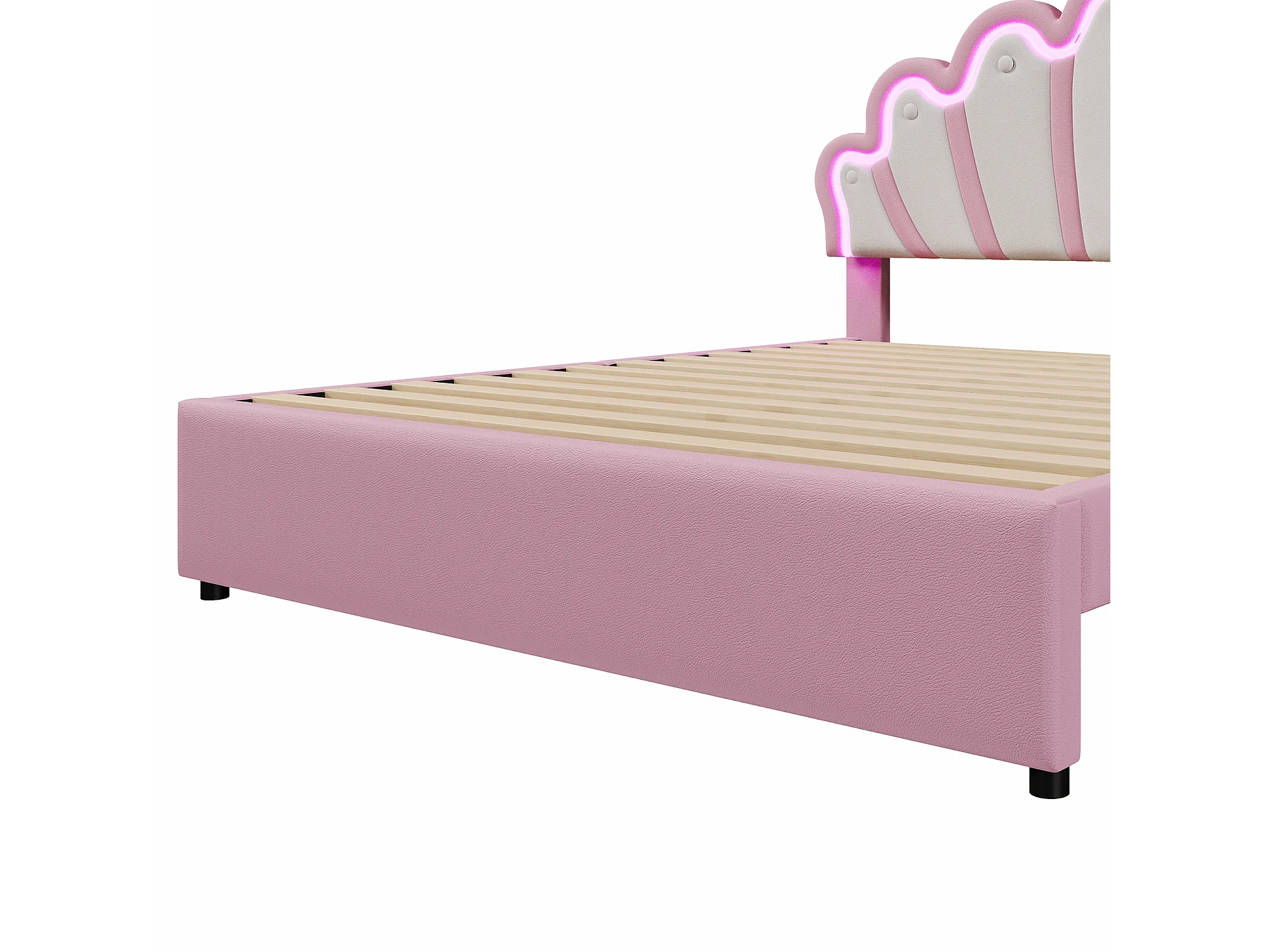 Lit adulte 140x200 cm avec 2 tiroirs - tête de lit réglable en hauteur et LED - similicuir - rose (sans matelas)