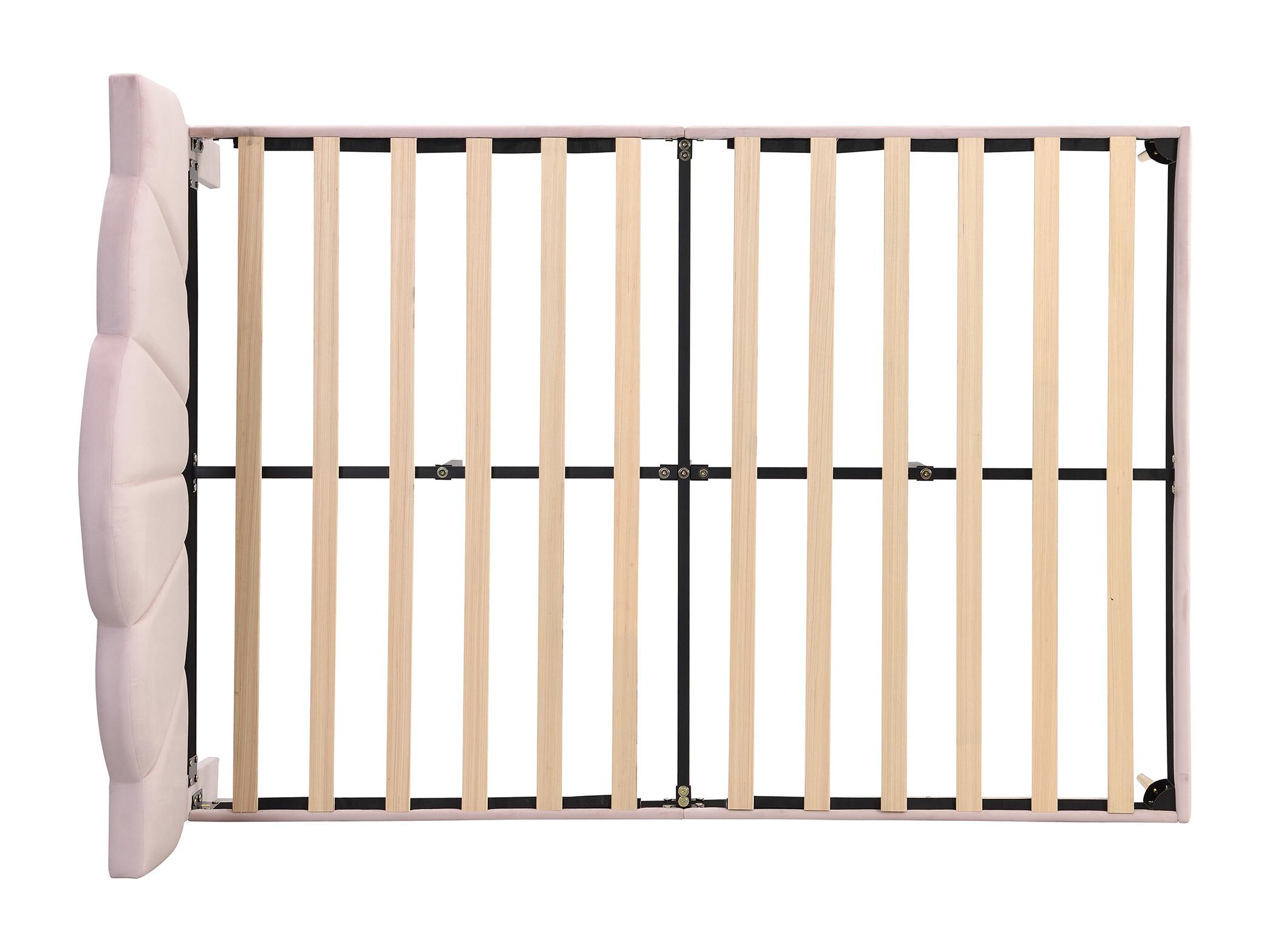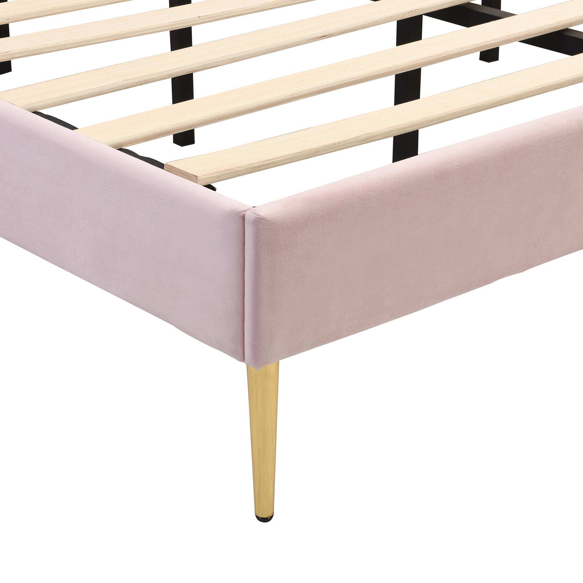 Lit adulte double 140x200 cm avec sommier - tête de lit réglable en hauteur et pieds en métal - bois - velours rose (sans matelas)