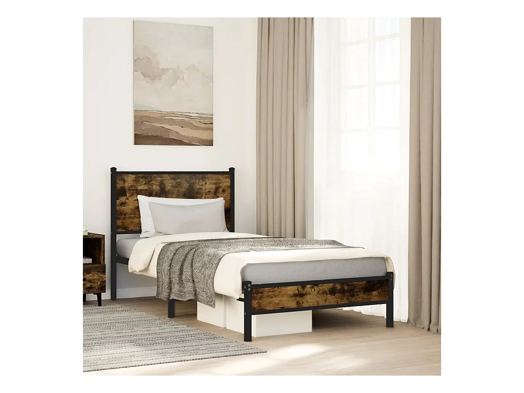 Lit adulte en métal avec tête de lit chêne fumé 90x190 cm FR105421