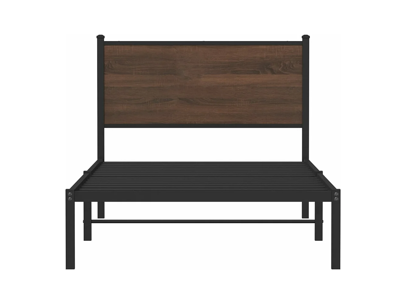 Lit adulte en métal avec tête de lit chêne marron 107x203 cm FR829464