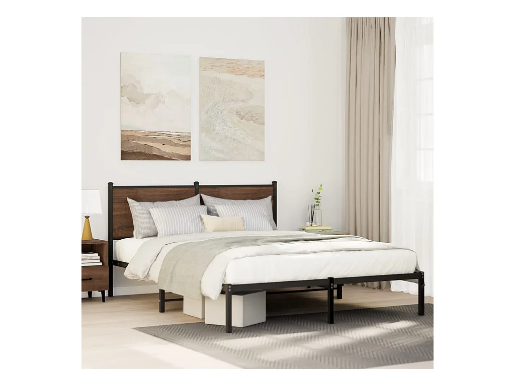Lit adulte en métal avec tête de lit chêne marron 150x200 cm FR481810