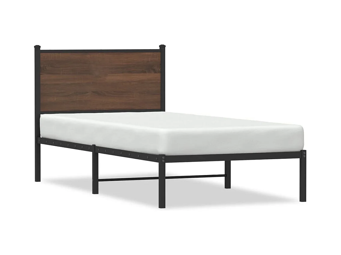 Lit adulte en métal avec tête de lit chêne marron 90x190 cm FR322966