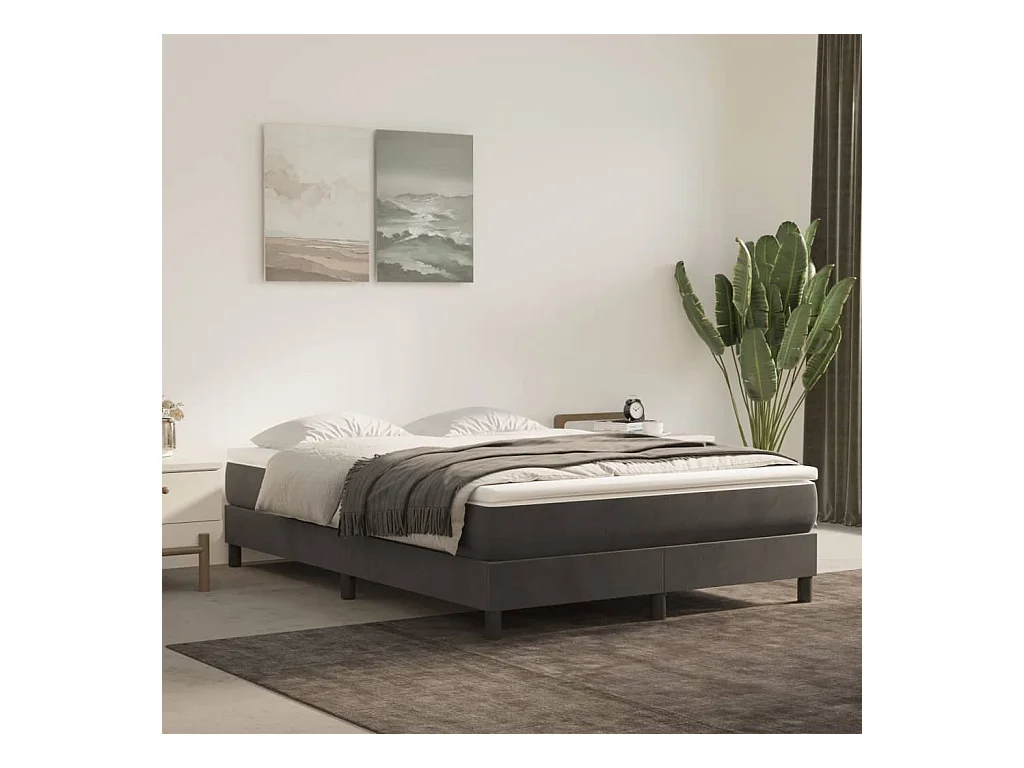 Cadre de lit avec matelas Gris foncé 140 x 190 cm Velours