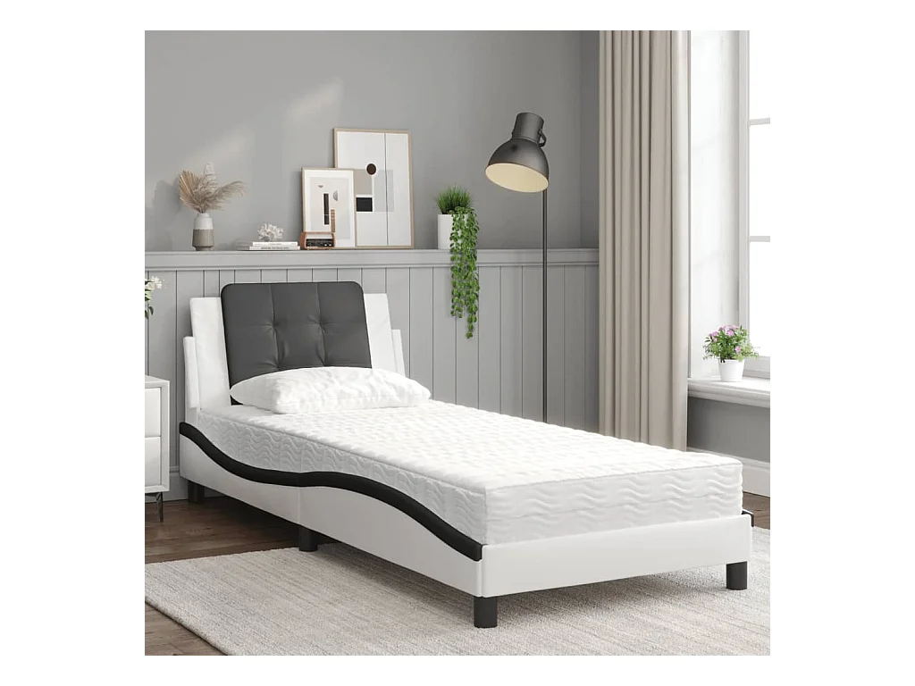 Lit adulte + matelas blanc et noir 100x200 cm similicuir FR15384