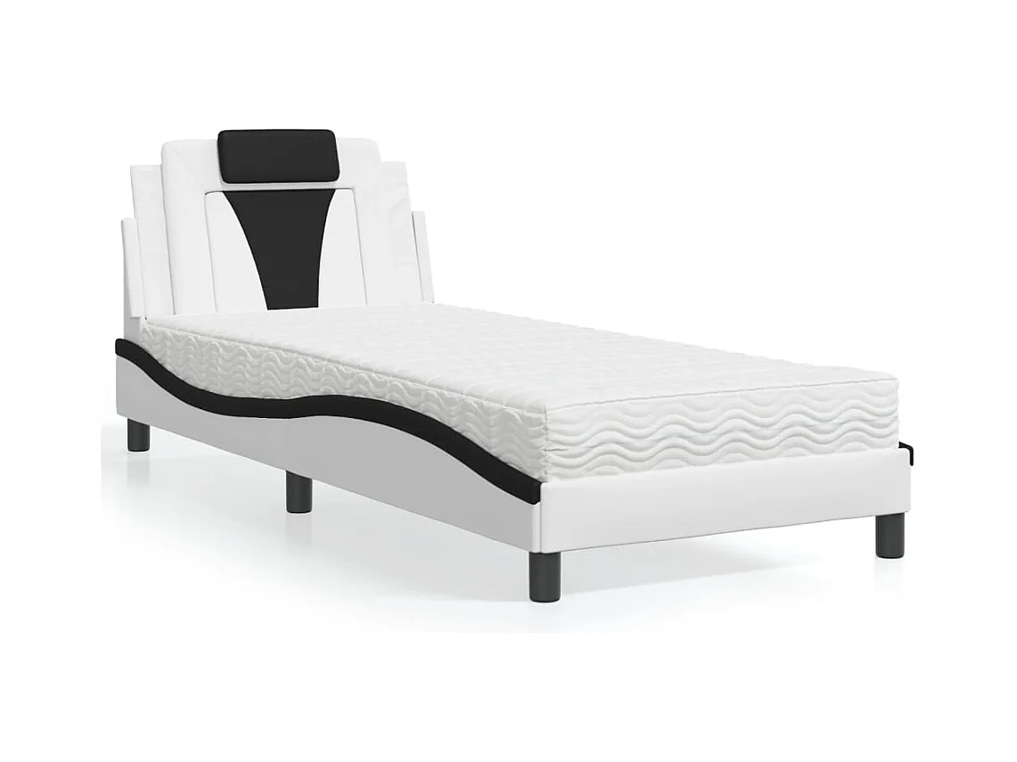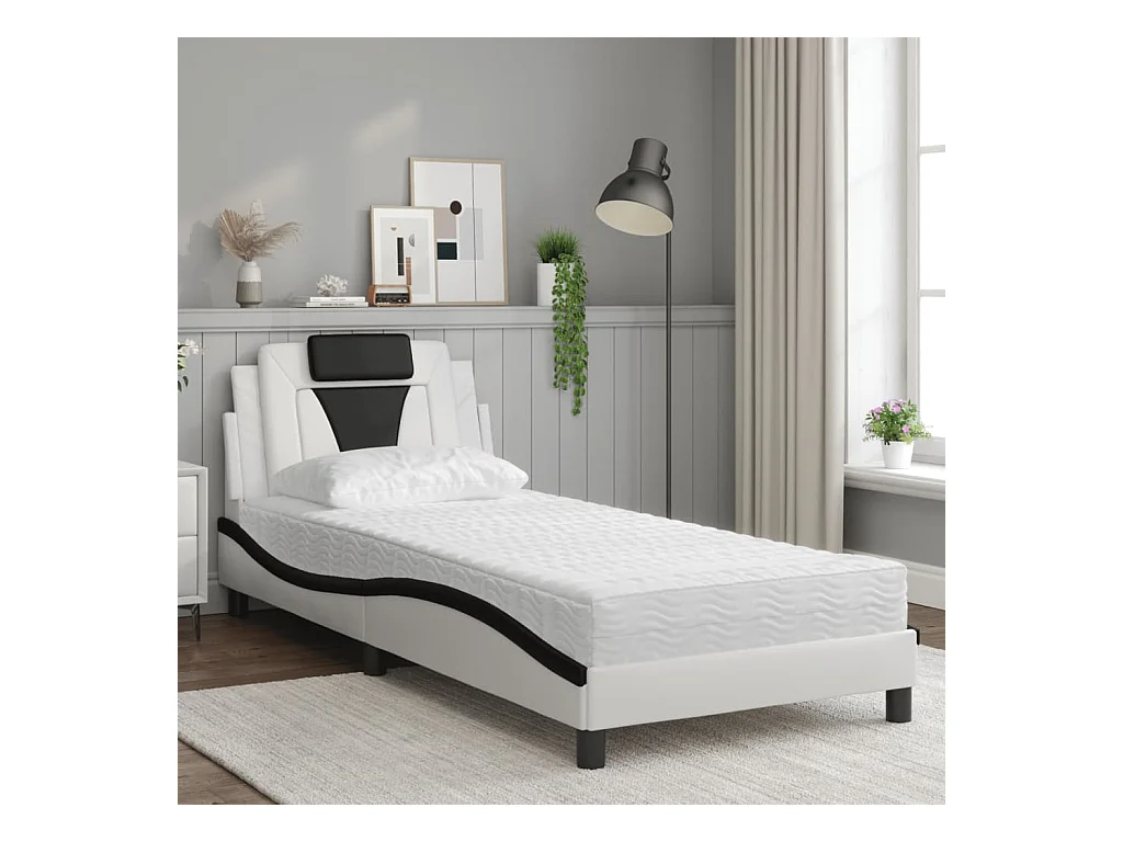 Lit adulte + matelas blanc et noir 90x200 cm similicuir FR35415
