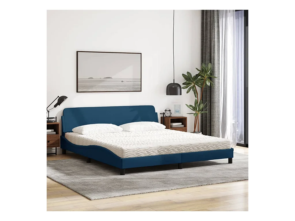 Lit adulte + matelas bleu 180x200 cm tissu FR11110
