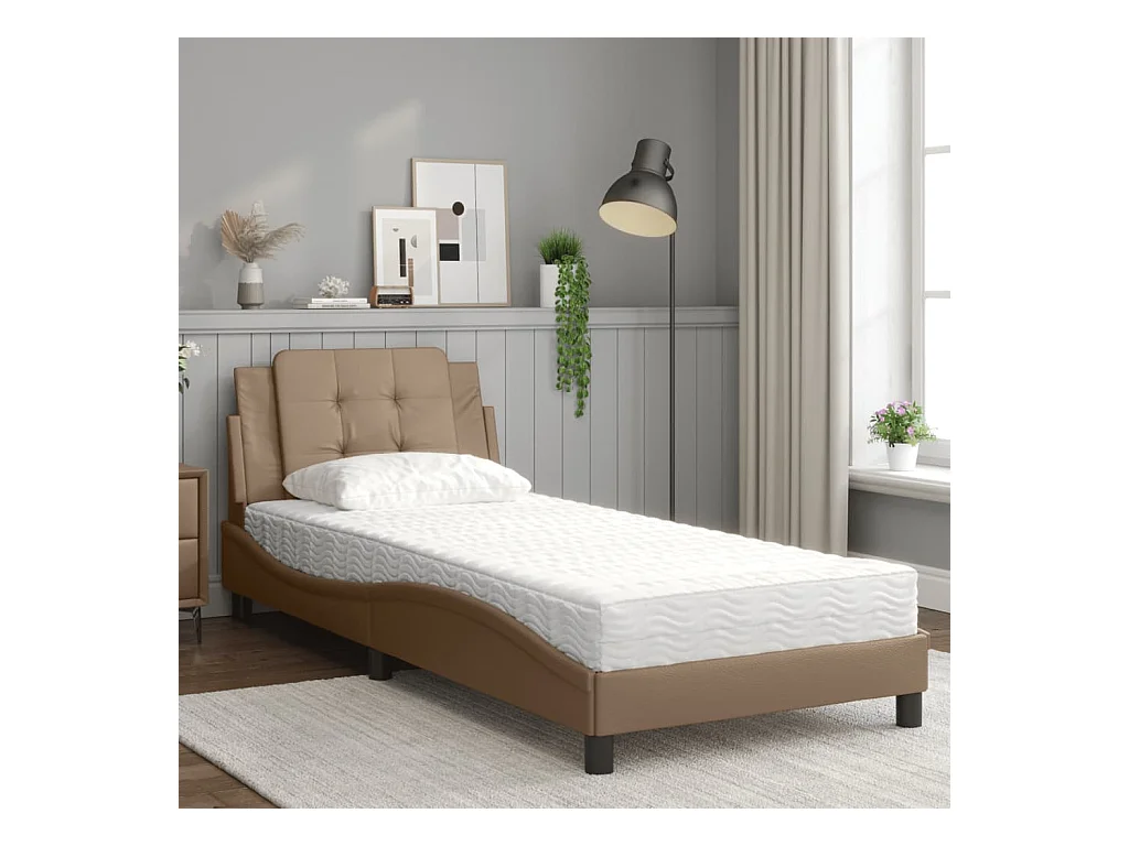Lit adulte + matelas cappuccino 100x200 cm similicuir FR27855