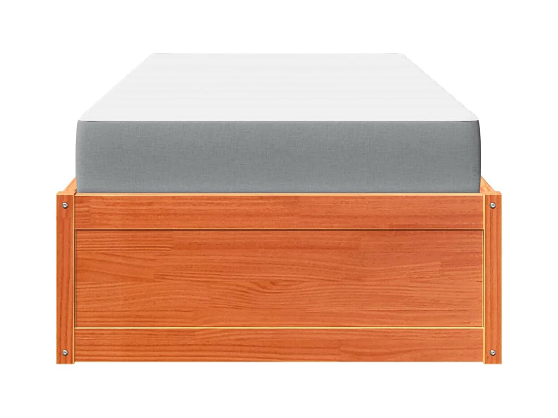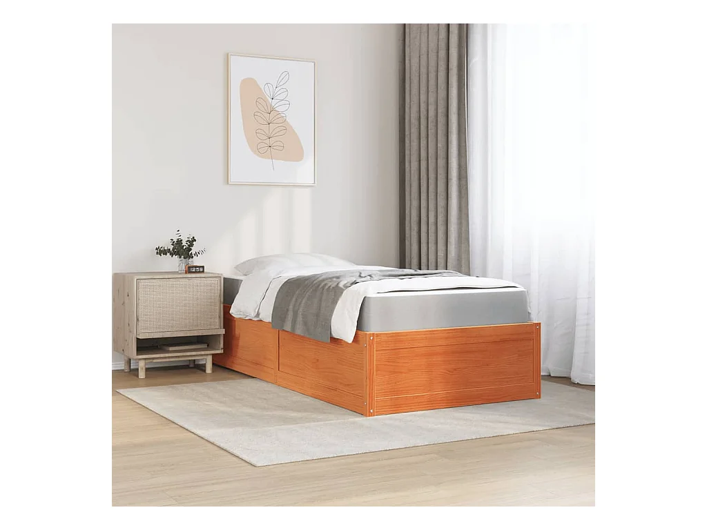 Lit adulte + matelas cire marron 90x190 cm bois massif de pin FR72033