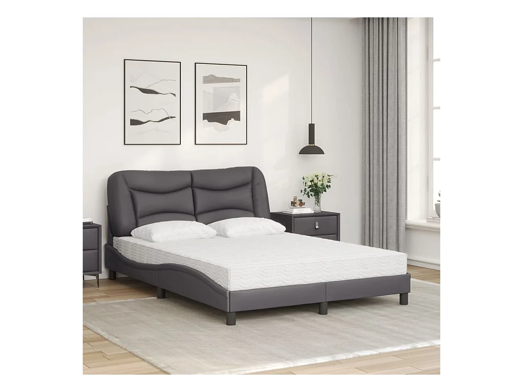 Lit adulte + matelas gris 140x190 cm similicuir FR26998