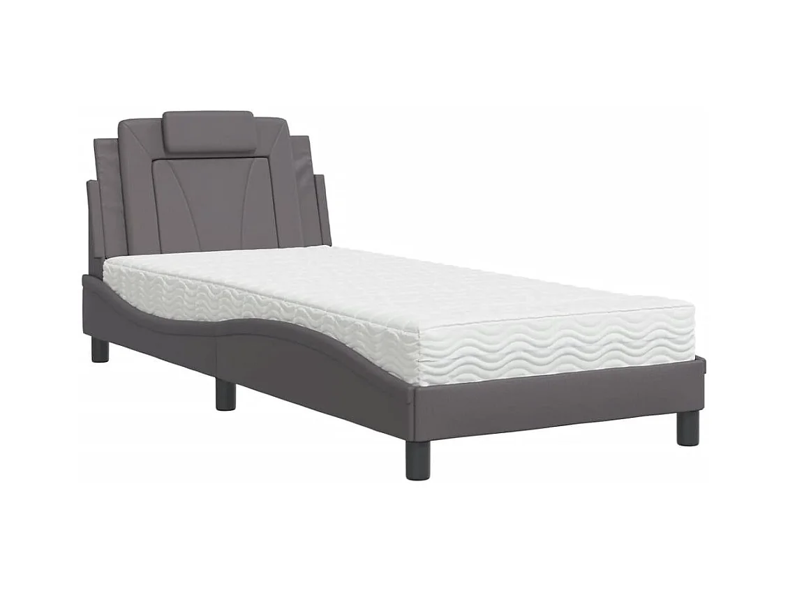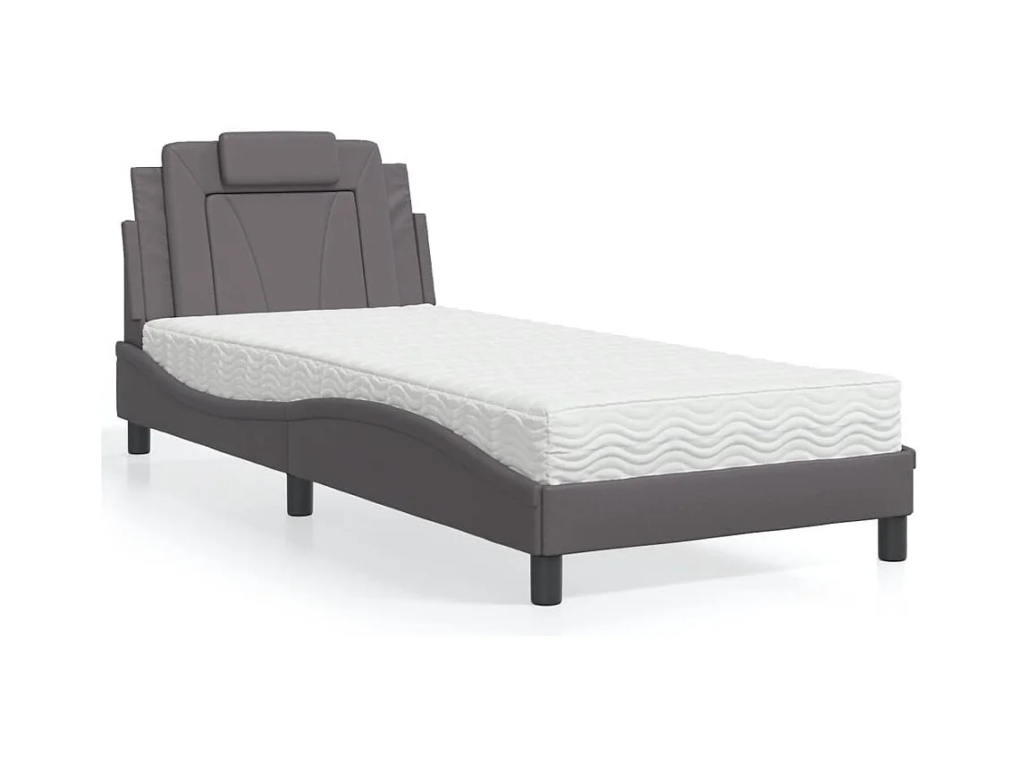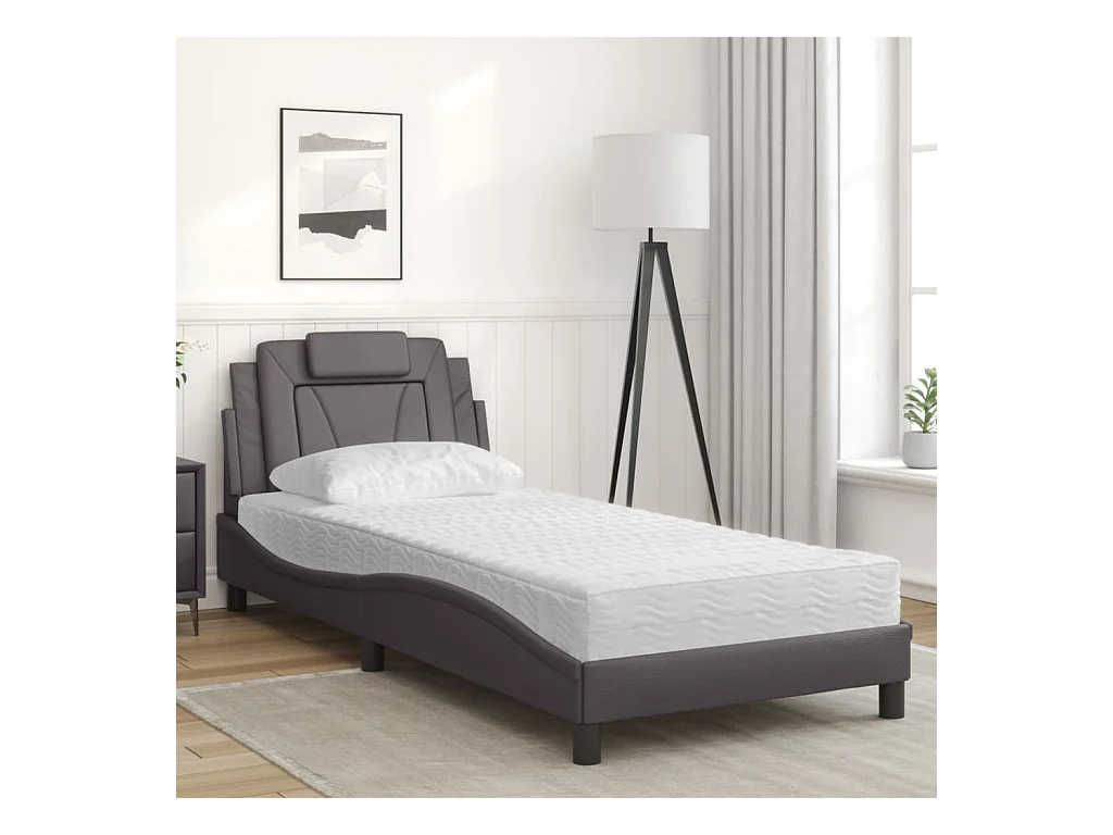 Lit adulte + matelas gris 90x190 cm similicuir FR53033