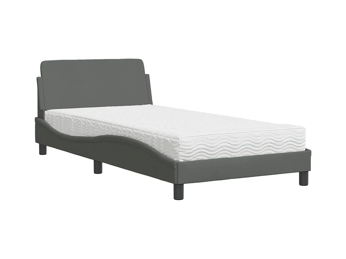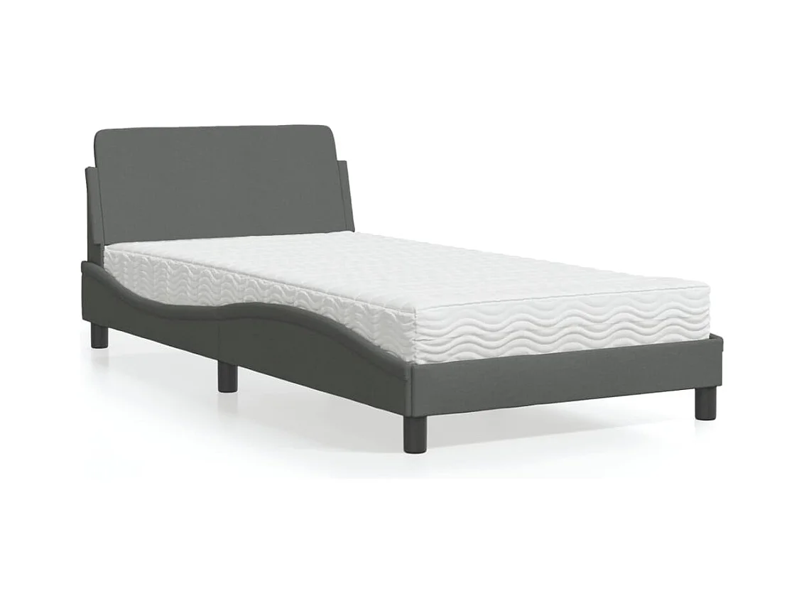 Lit adulte + matelas gris foncé 100x200 cm tissu FR19889