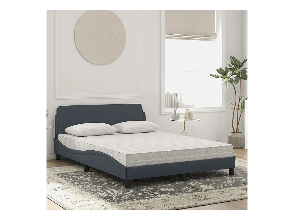 Lit adulte + matelas gris foncé 120x200 cm velours FR20775