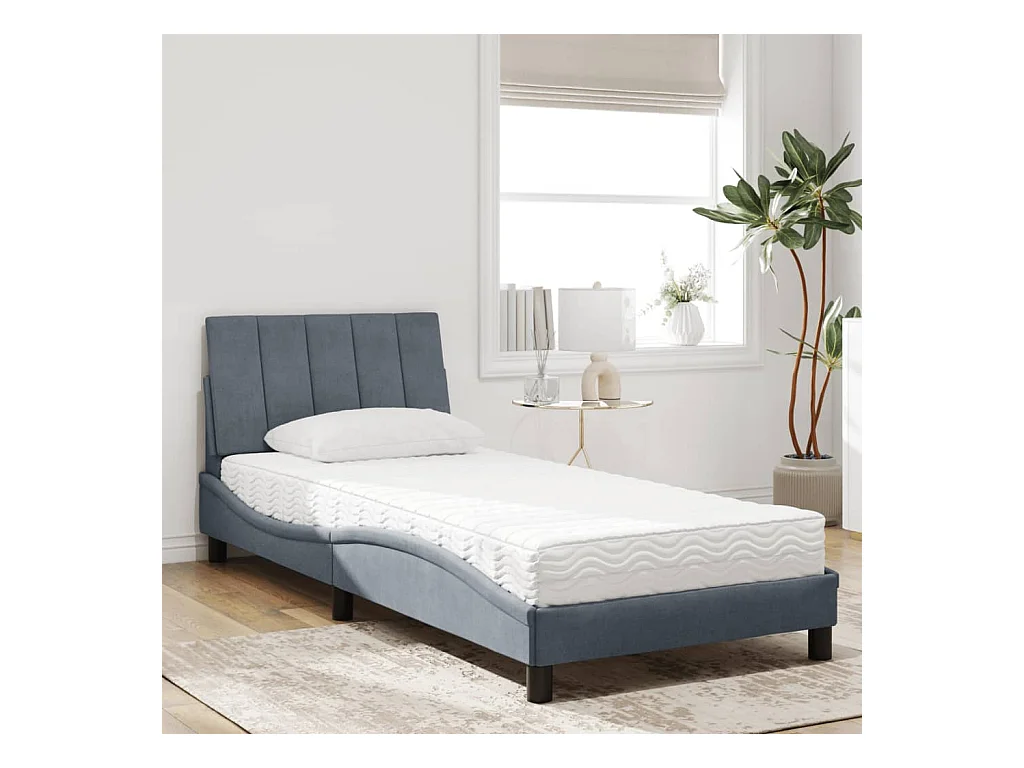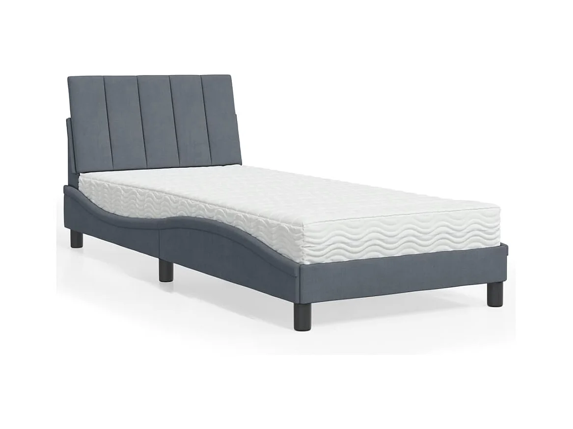 Lit adulte + matelas gris foncé 90x190 cm velours FR75007
