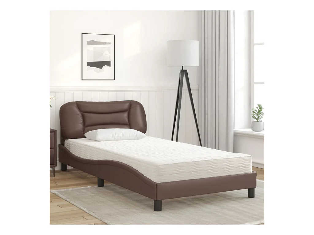 Lit adulte + matelas cappuccino 100x200 cm similicuir FR64009