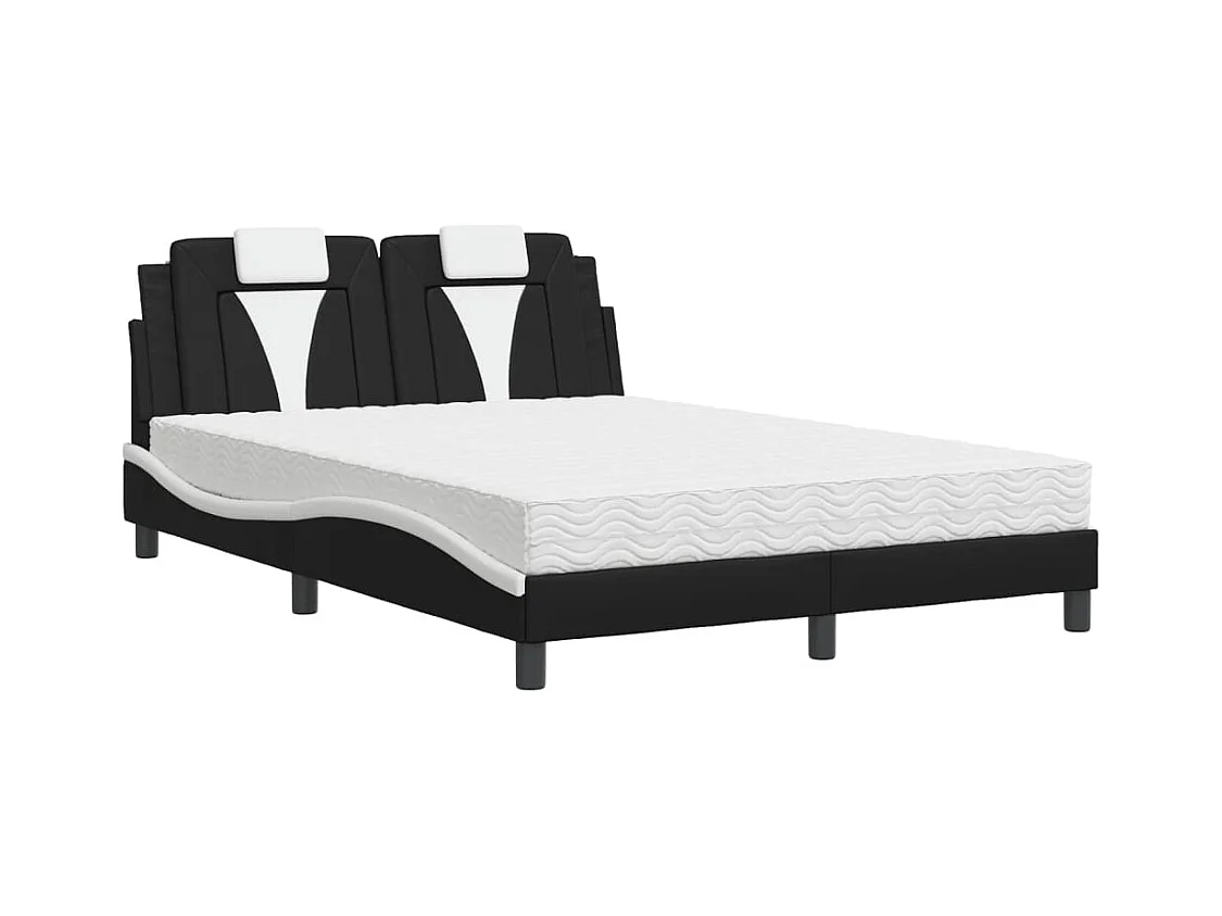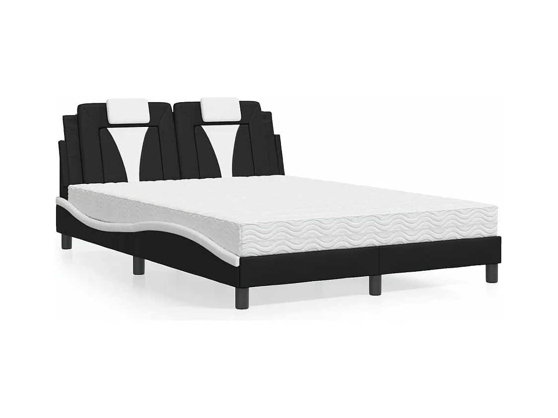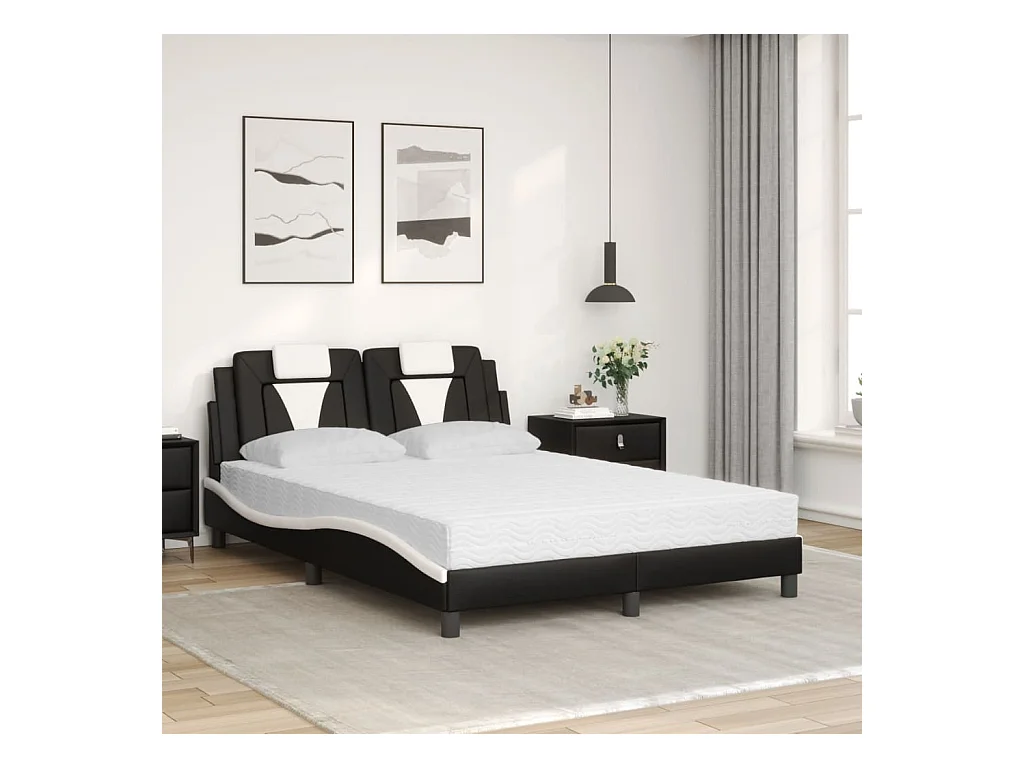 Lit double et tête de lit noir et blanc 140x190 cm similicuir FR49842
