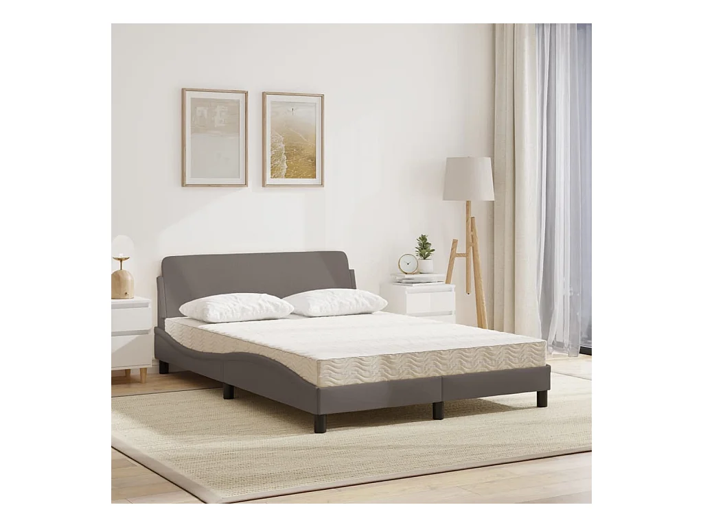 Lit adulte + matelas taupe 120x200 cm tissu FR14452