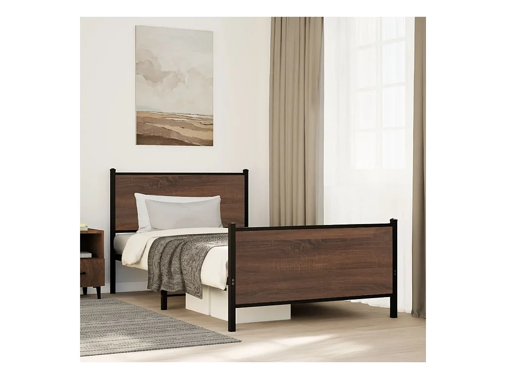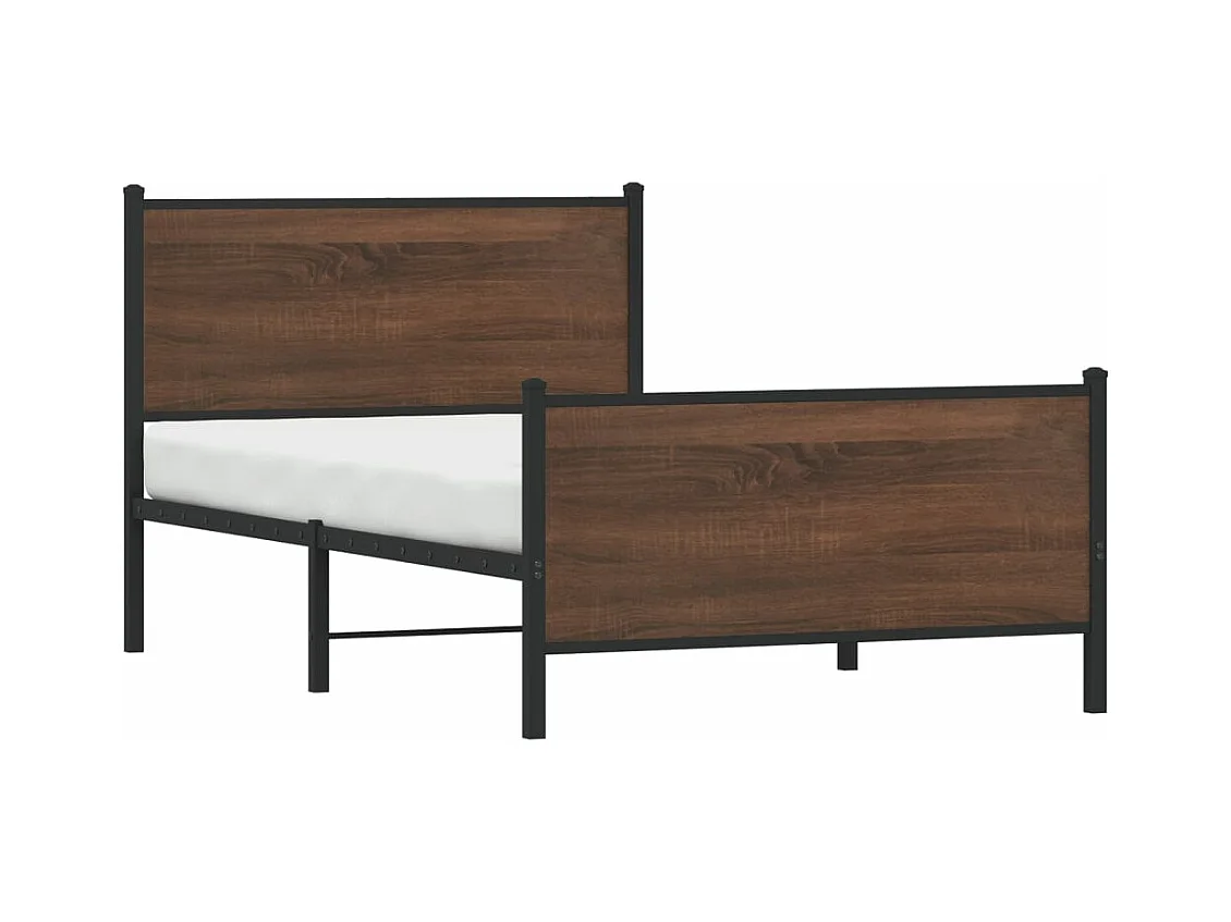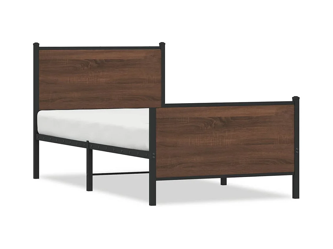 Lit adulte en métal avec tête de lit chêne marron 100x190 cm FR128170