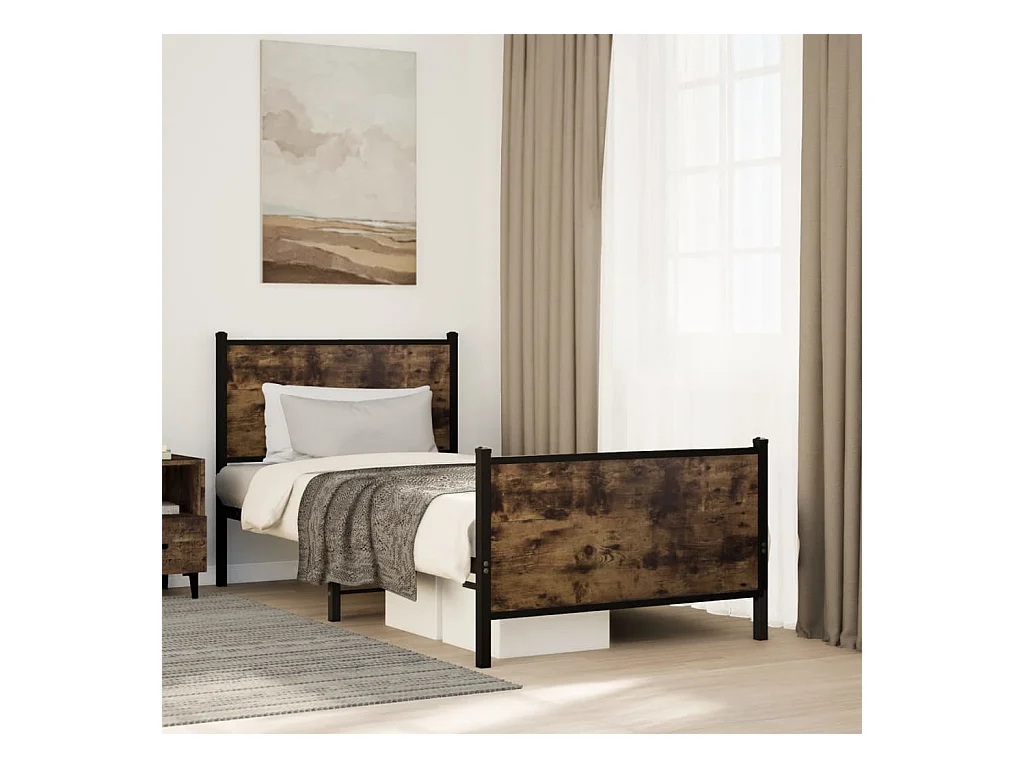 Lit adulte en métal avec tête de lit chêne sonoma 75x190 cm FR599934